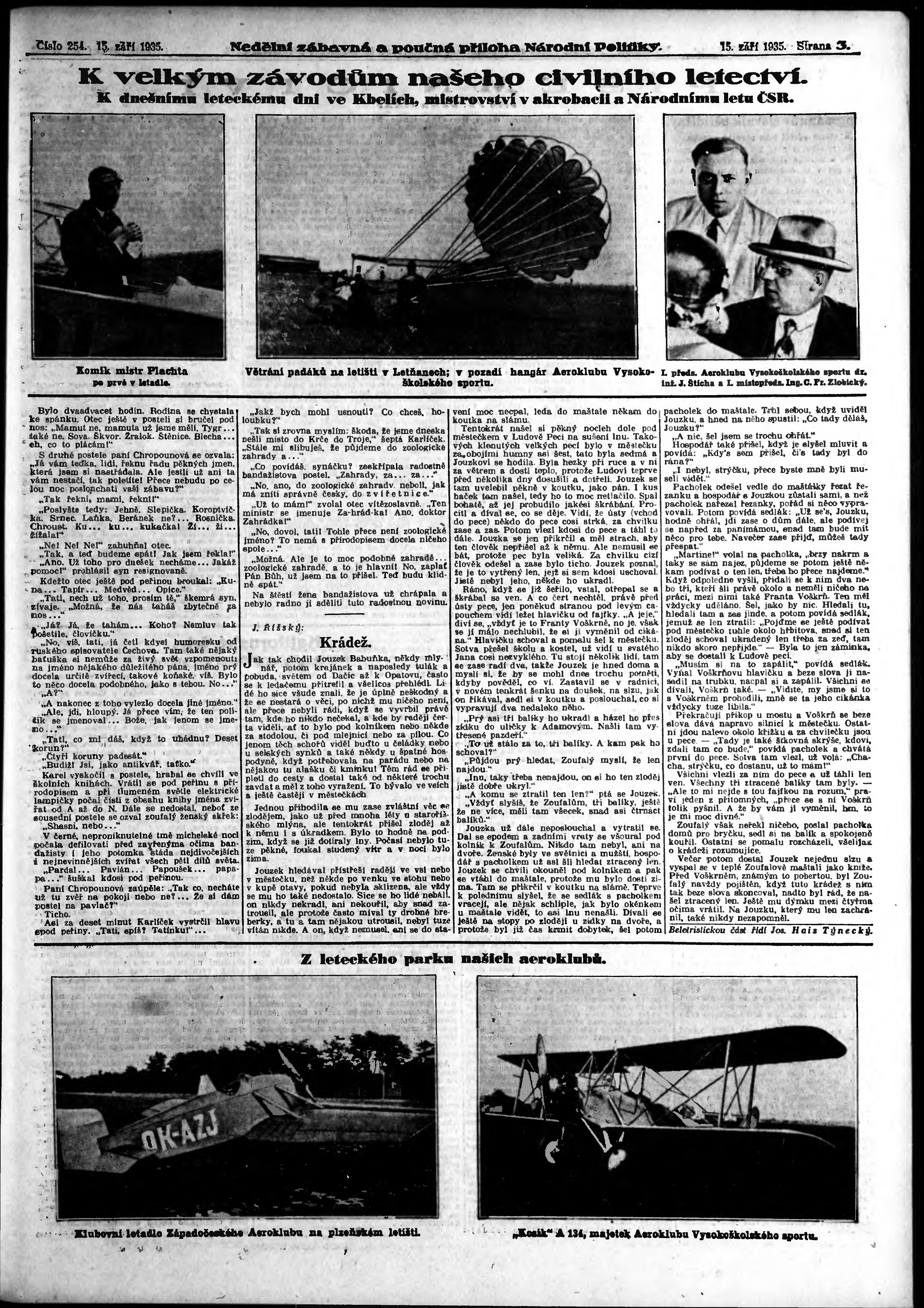 * Datum vydání výtisku: 15.9.1935 Číslo výtisku: 254 Typ výtisku: příloha