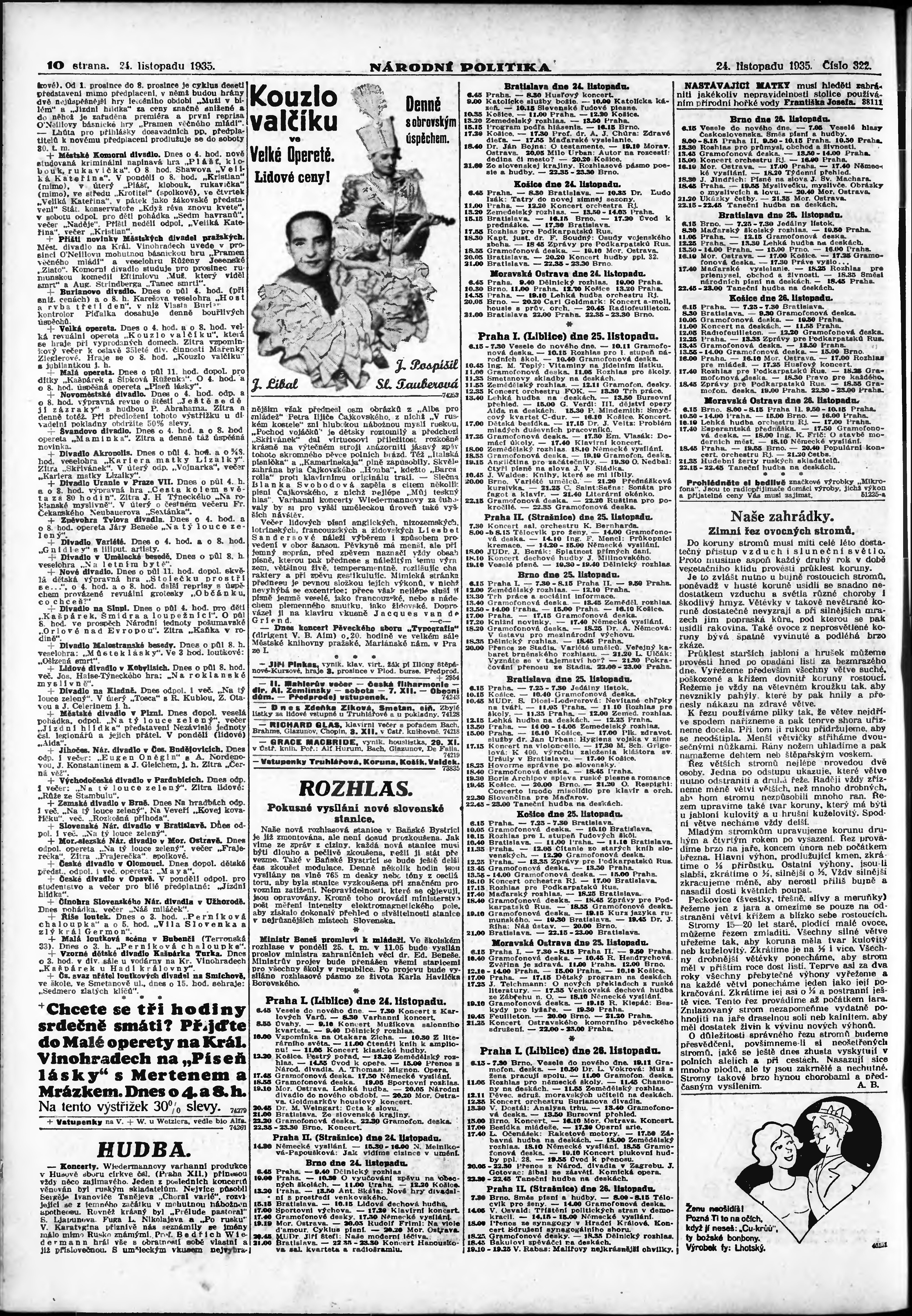 * Datum vydání výtisku: 24.11.1935 Číslo výtisku: 322 Poznámky k výtisku: ranní vydání;
