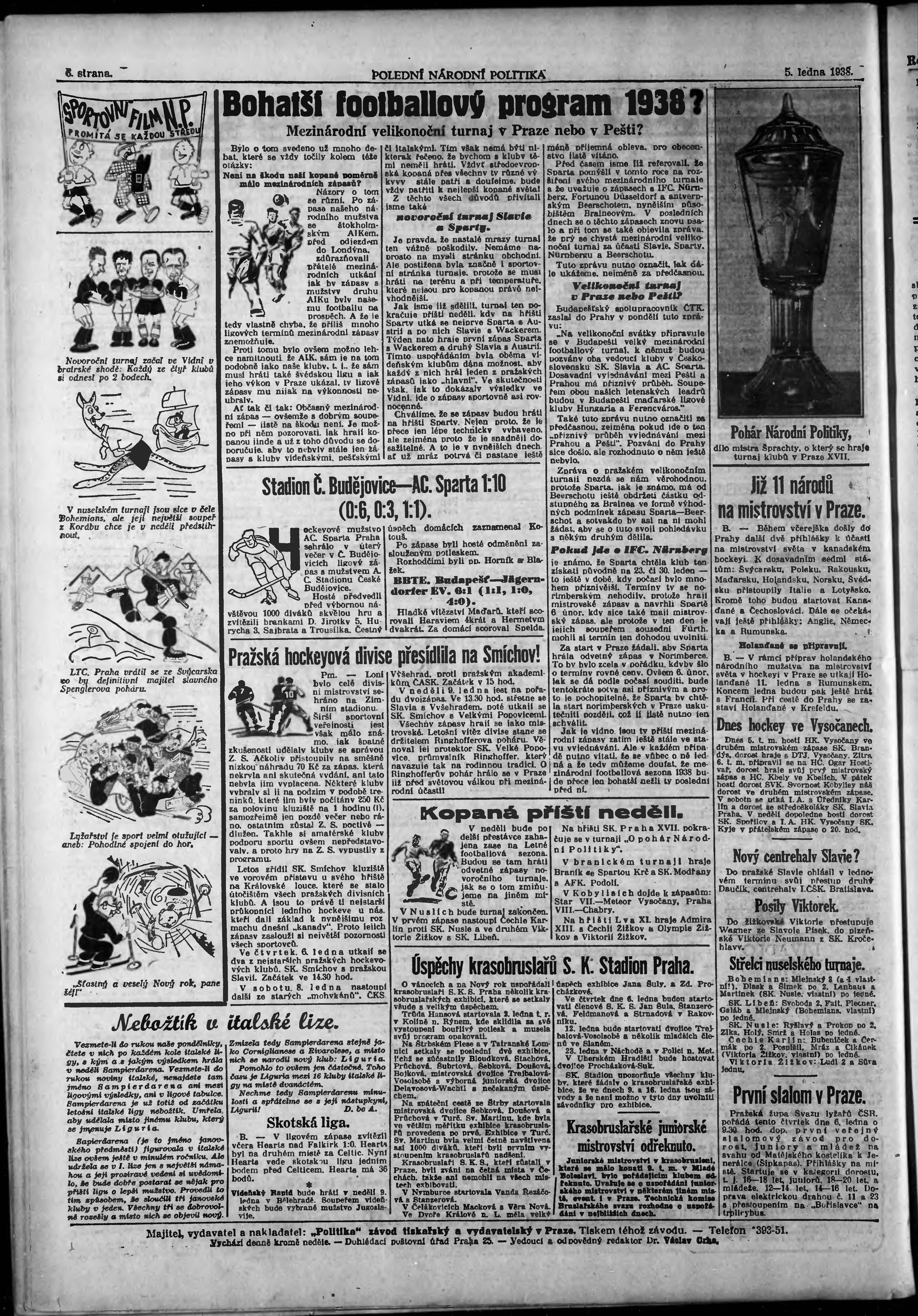 * Datum vydání výtisku: 5.1.1938 Číslo výtisku: 4 Poznámky k výtisku: polední vydání;