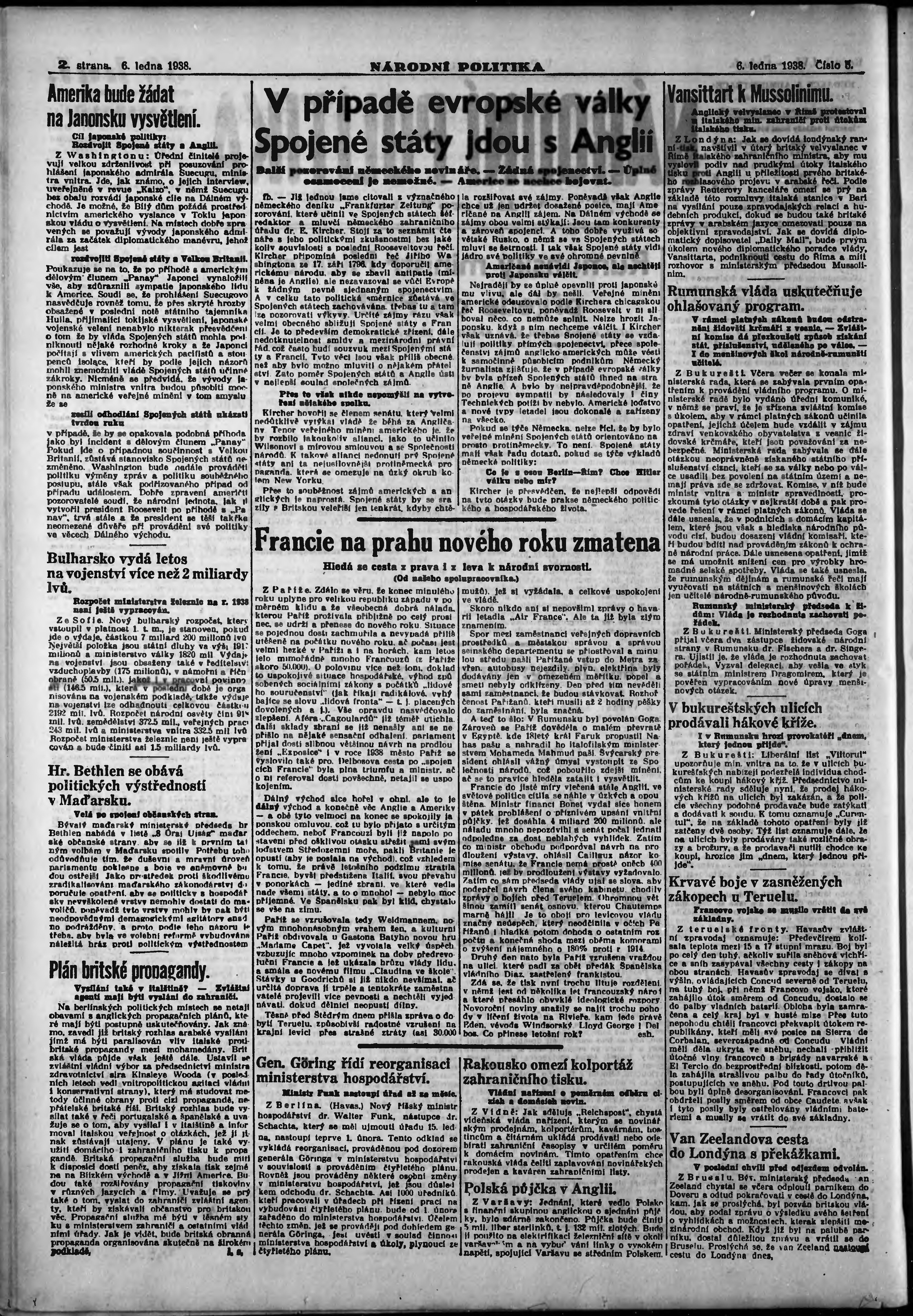 * Datum vydání výtisku: 6.1.1938 Číslo výtisku: 5 Poznámky k výtisku: ranní vydání; vydání pro Prahu;