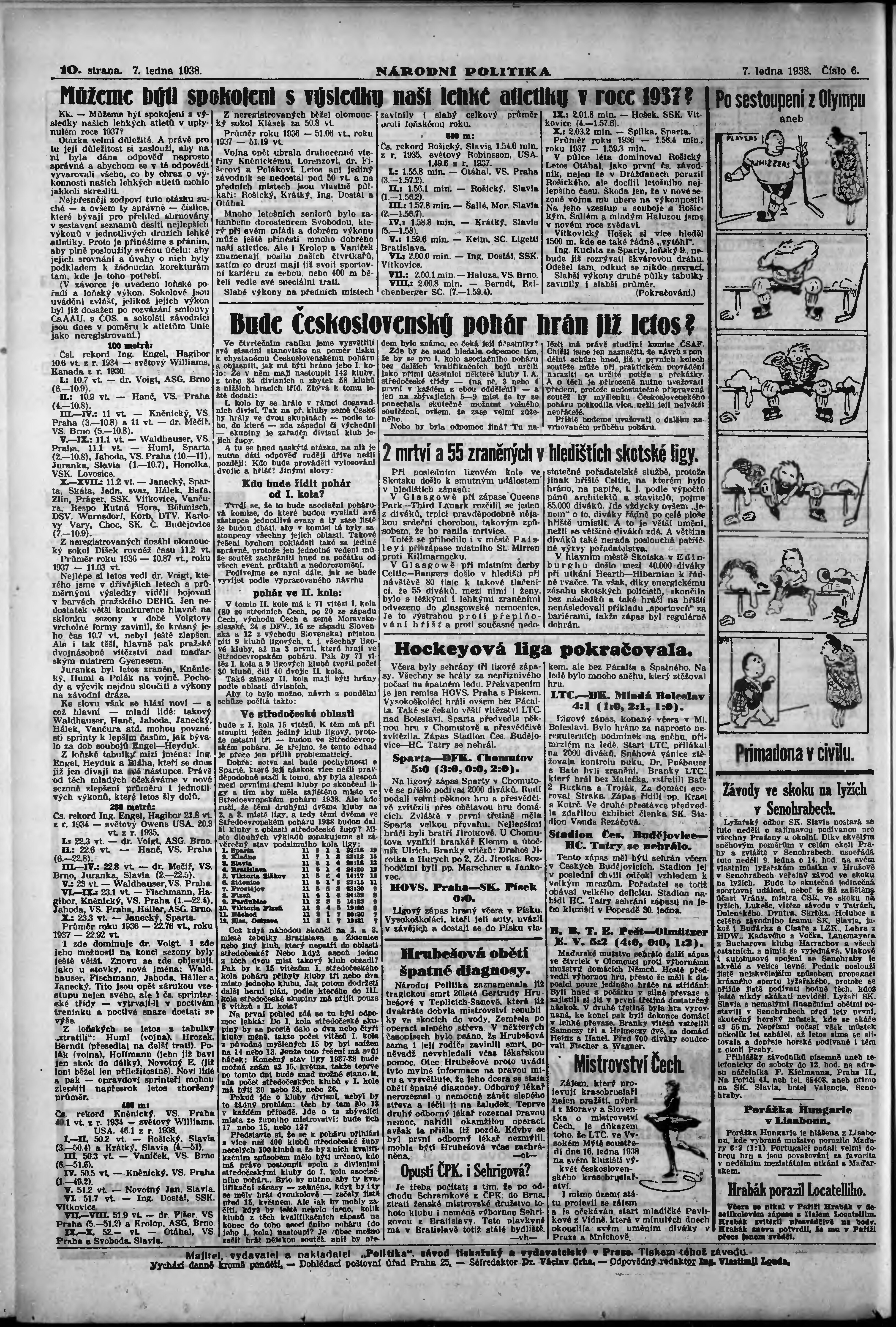 * Datum vydání výtisku: 7.1.1938 Číslo výtisku: 6 Poznámky k výtisku: ranní vydání; vydání pro Prahu;