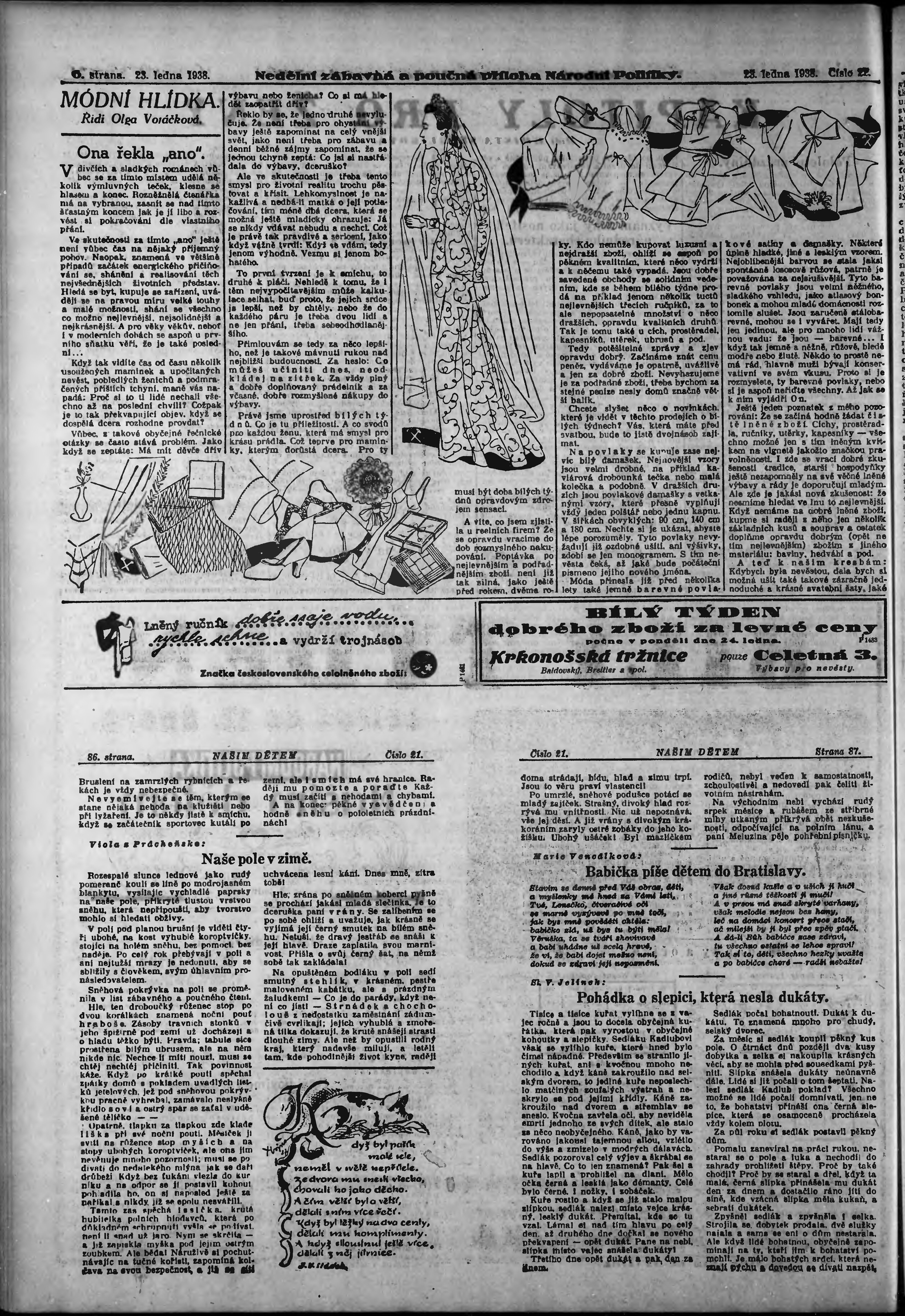 * Datum vydání výtisku: 23.1.1938 Číslo výtisku: 22 Typ výtisku: příloha