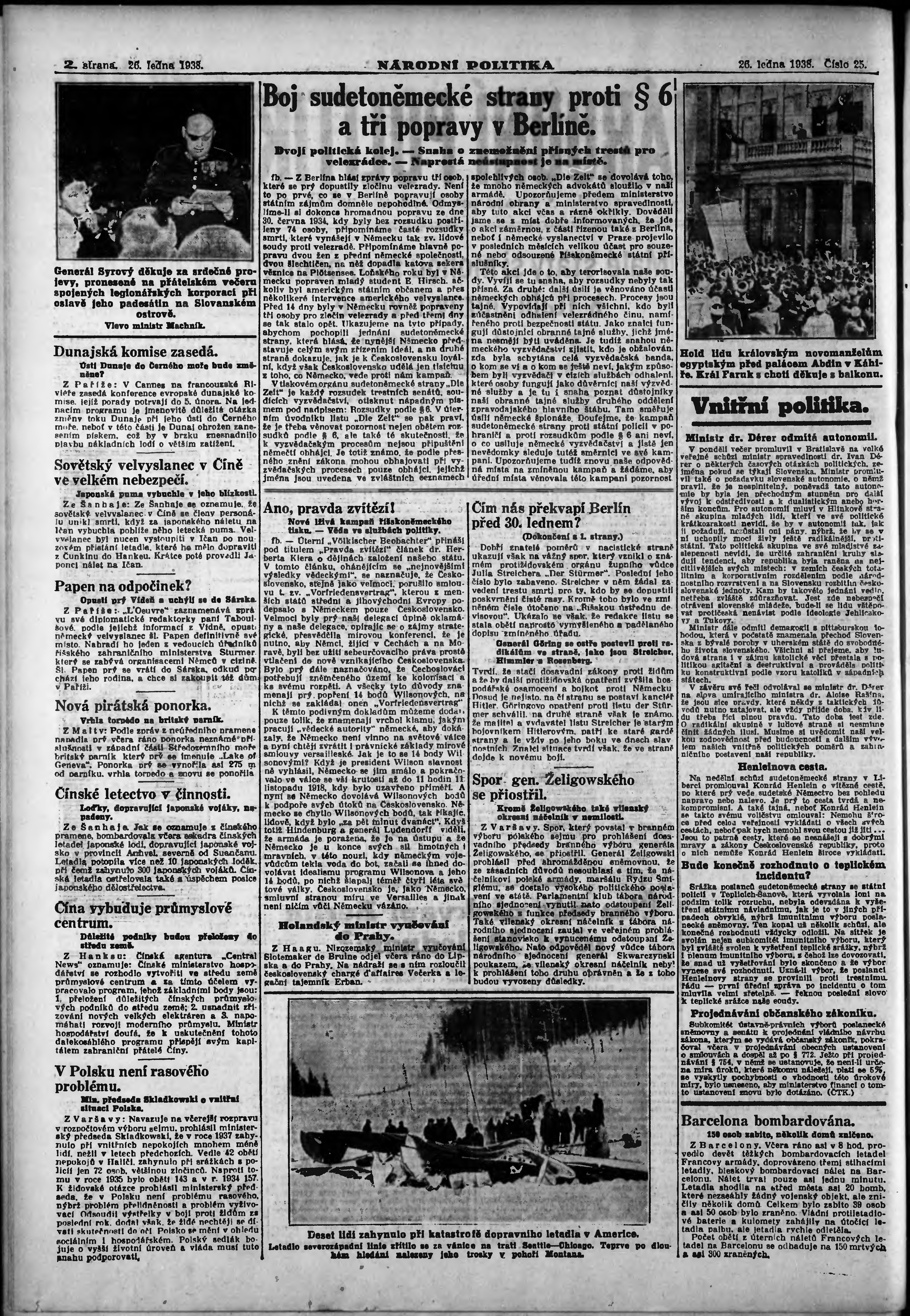 * Datum vydání výtisku: 26.1.1938 Číslo výtisku: 25 Poznámky k výtisku: ranní vydání; vydání pro Prahu;