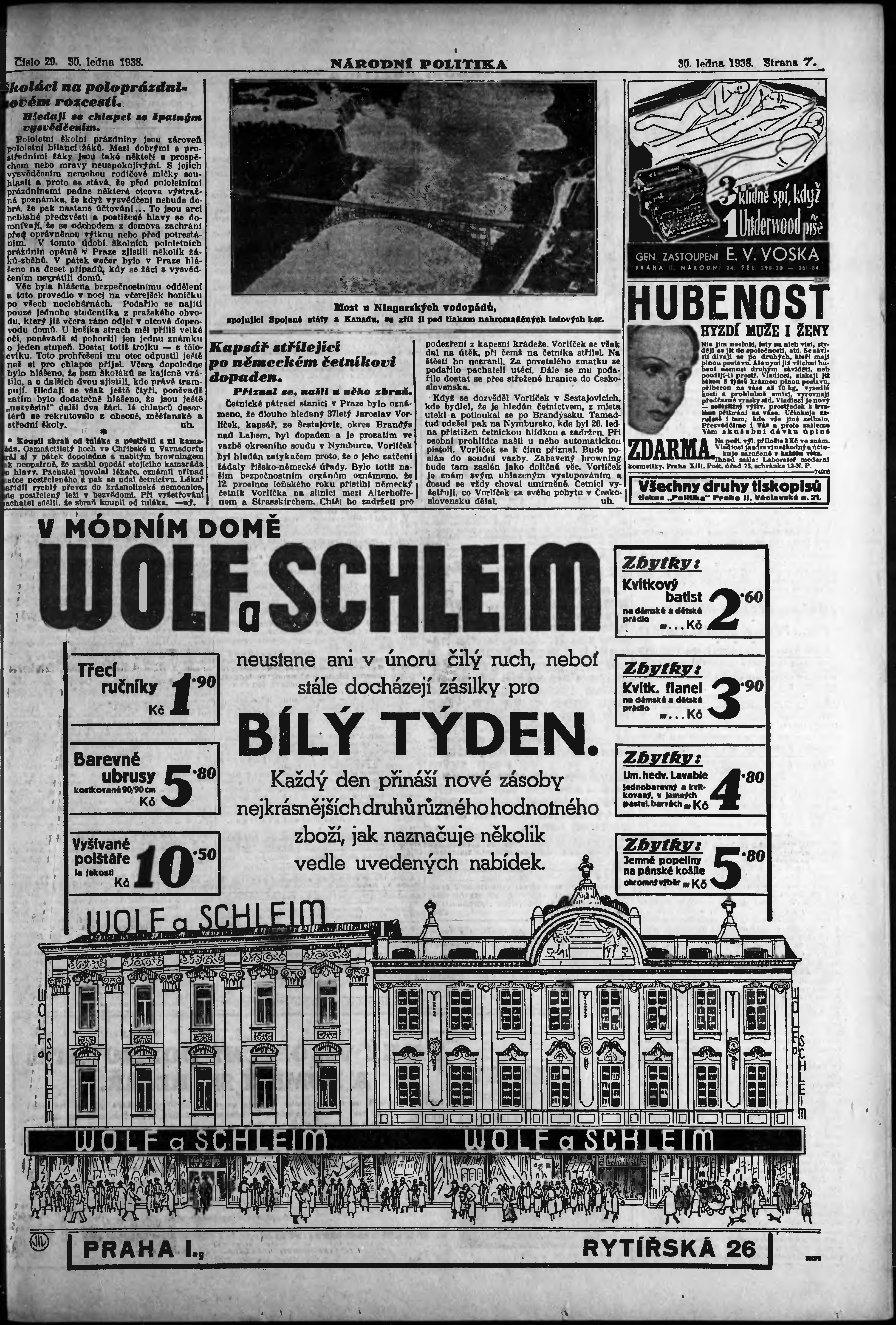 * Datum vydání výtisku: 30.1.1938 Číslo výtisku: 29 Poznámky k výtisku: ranní vydání;