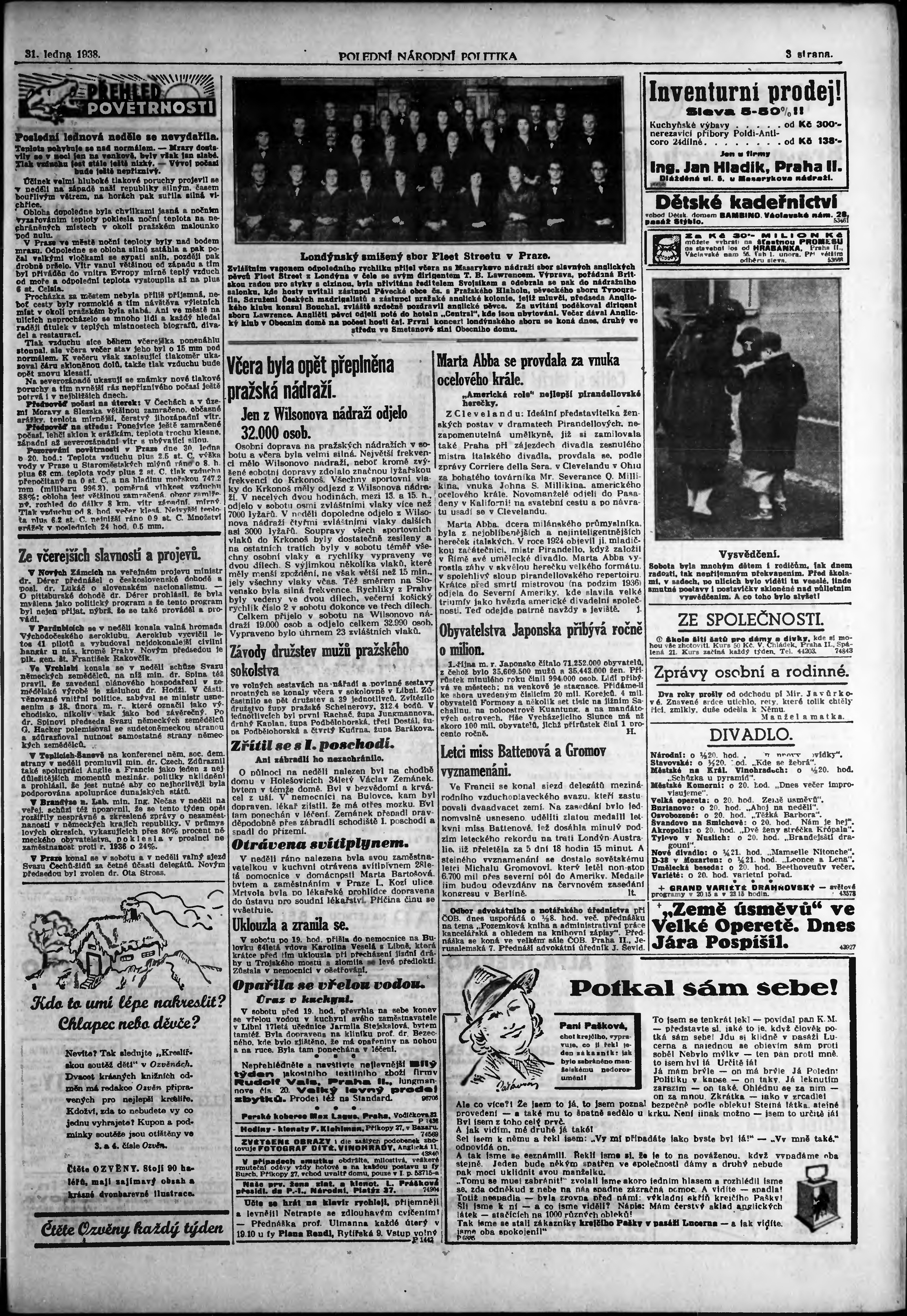 * Datum vydání výtisku: 31.1.1938 Číslo výtisku: 30 Poznámky k výtisku: polední vydání;
