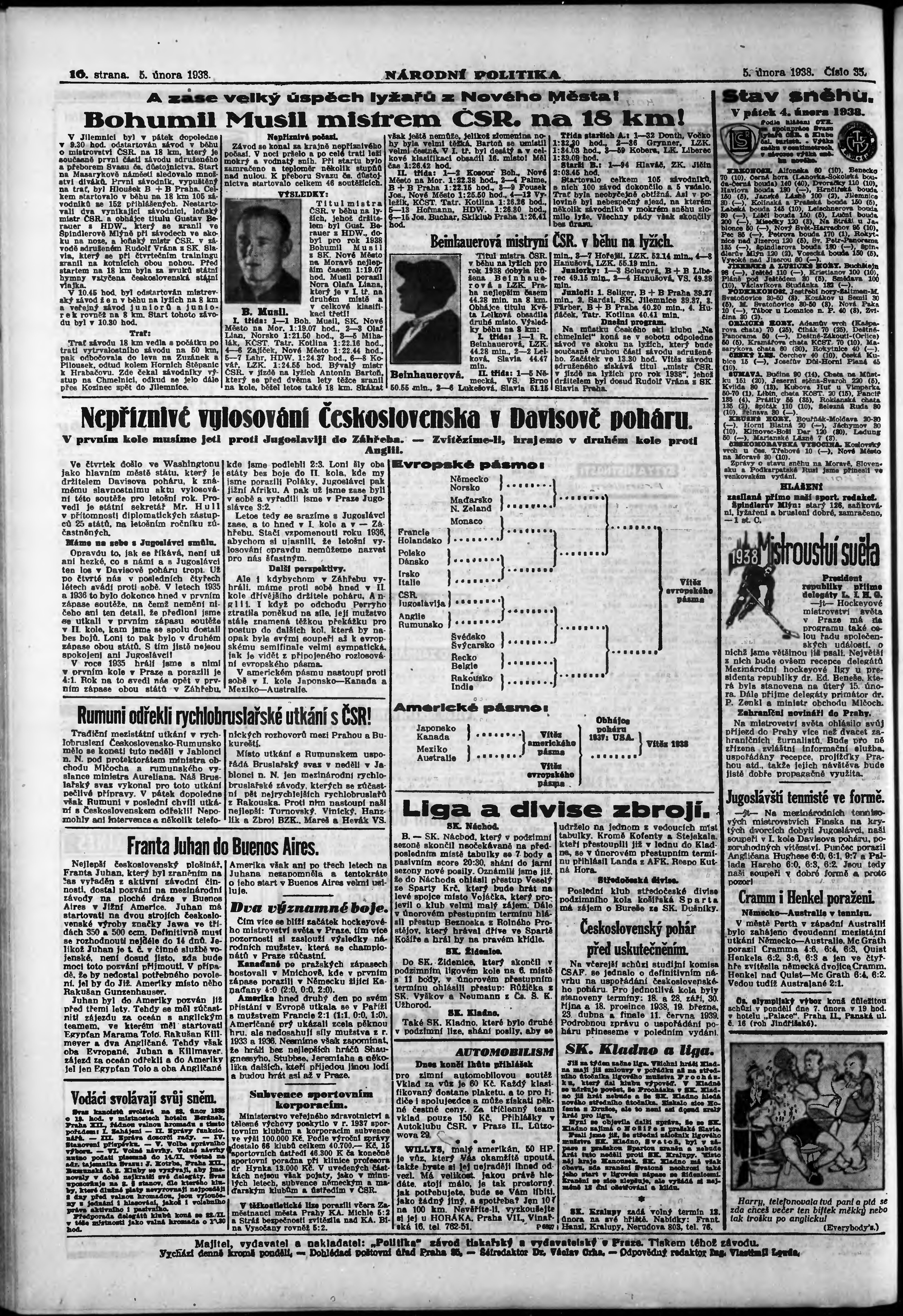 * Datum vydání výtisku: 5.2.1938 Číslo výtisku: 35 Poznámky k výtisku: ranní vydání; vydání pro Prahu;