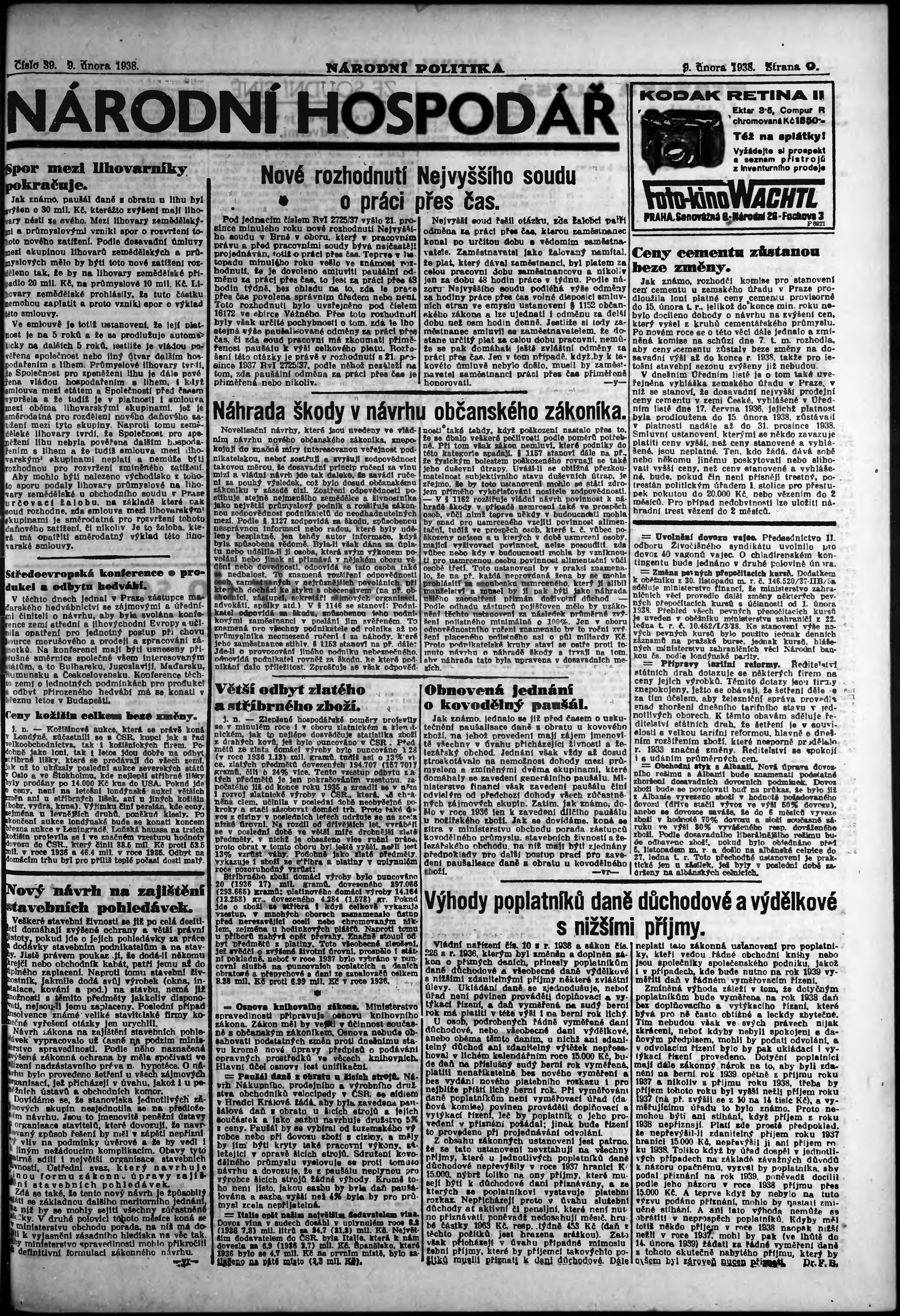 * Datum vydání výtisku: 9.2.1938 Číslo výtisku: 39 Poznámky k výtisku: ranní vydání; vydání pro Prahu;