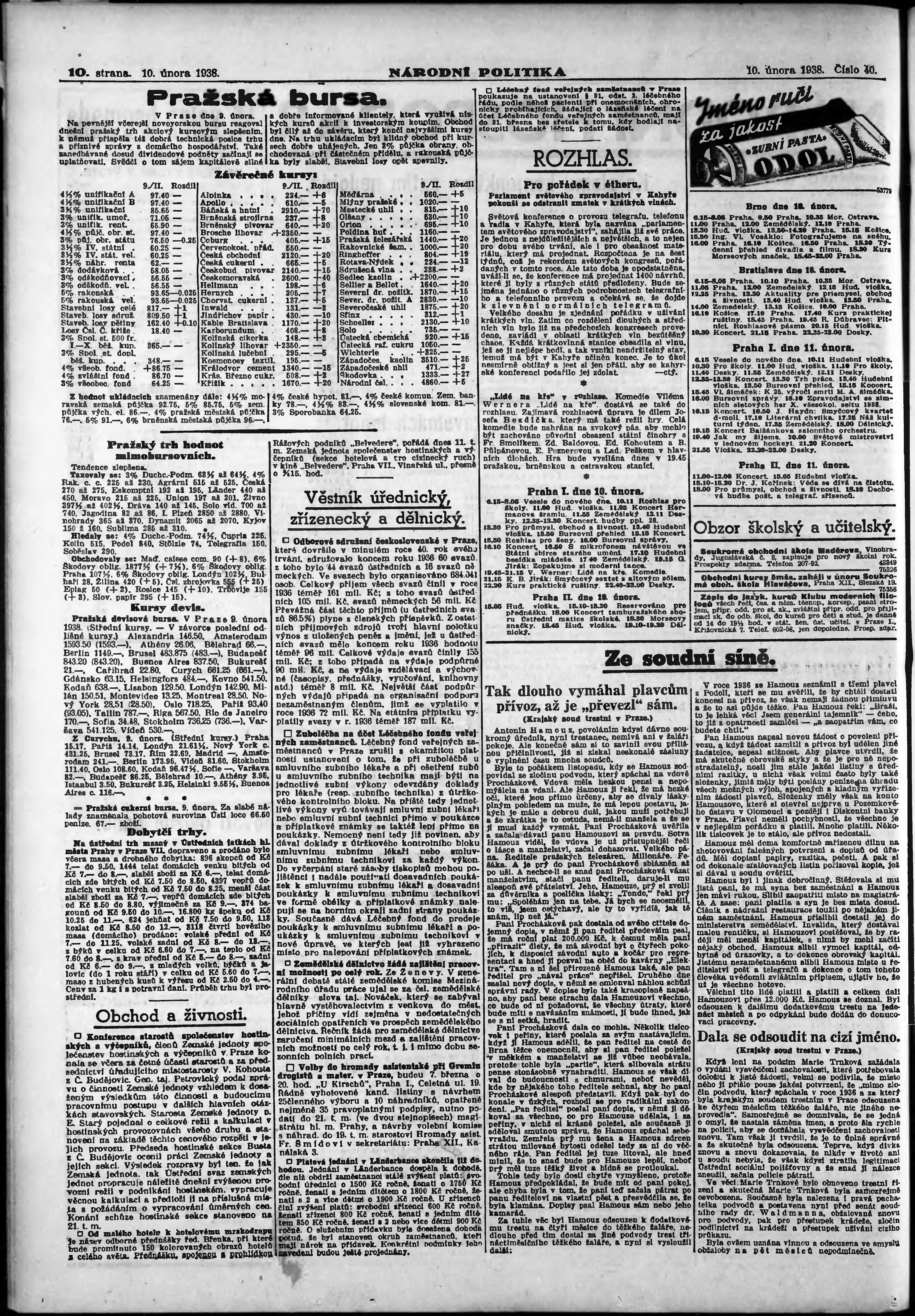 ranní vydání; vydání pro Prahu;