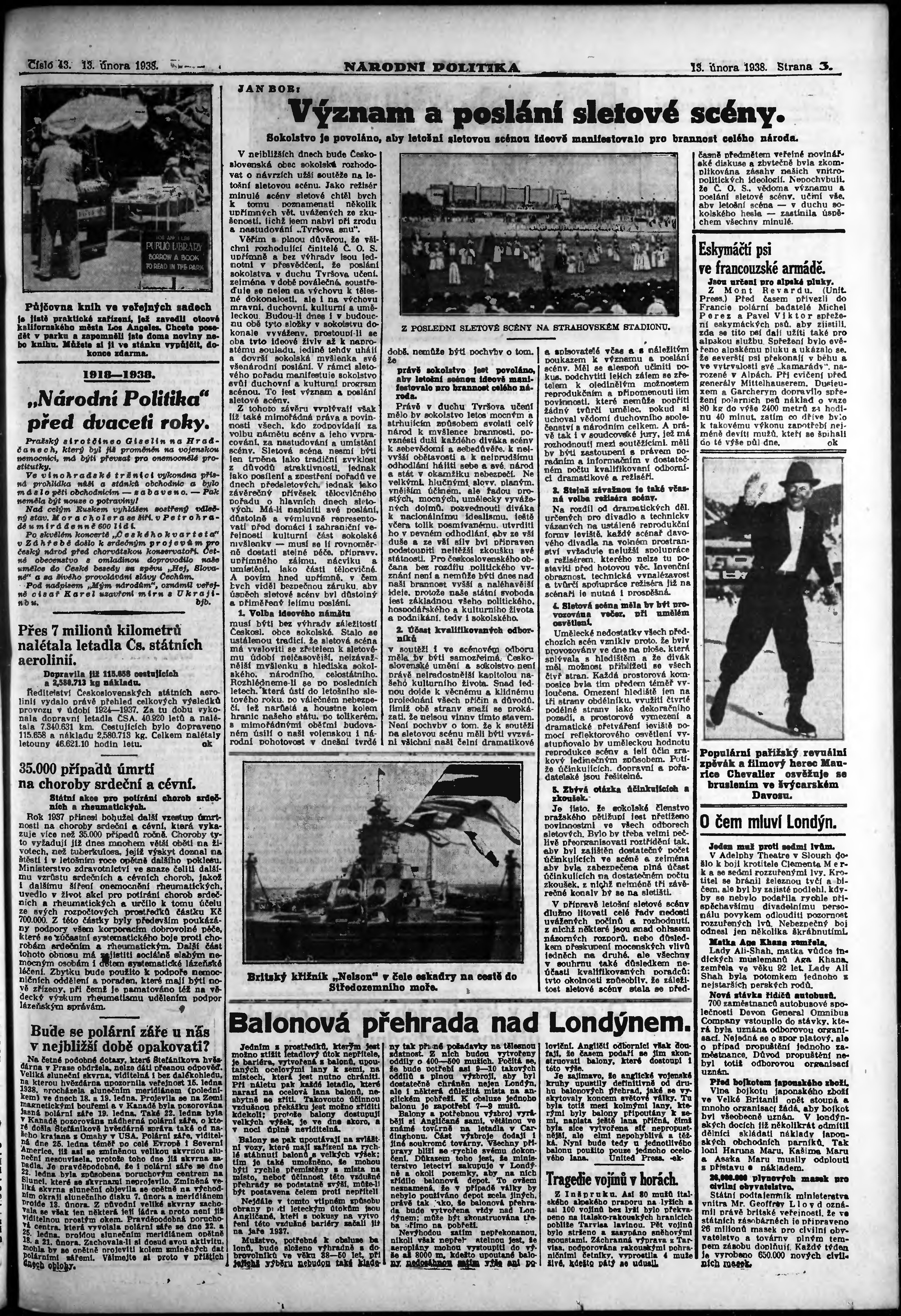* Datum vydání výtisku: 13.2.1938 Číslo výtisku: 43 Poznámky k výtisku: ranní vydání;