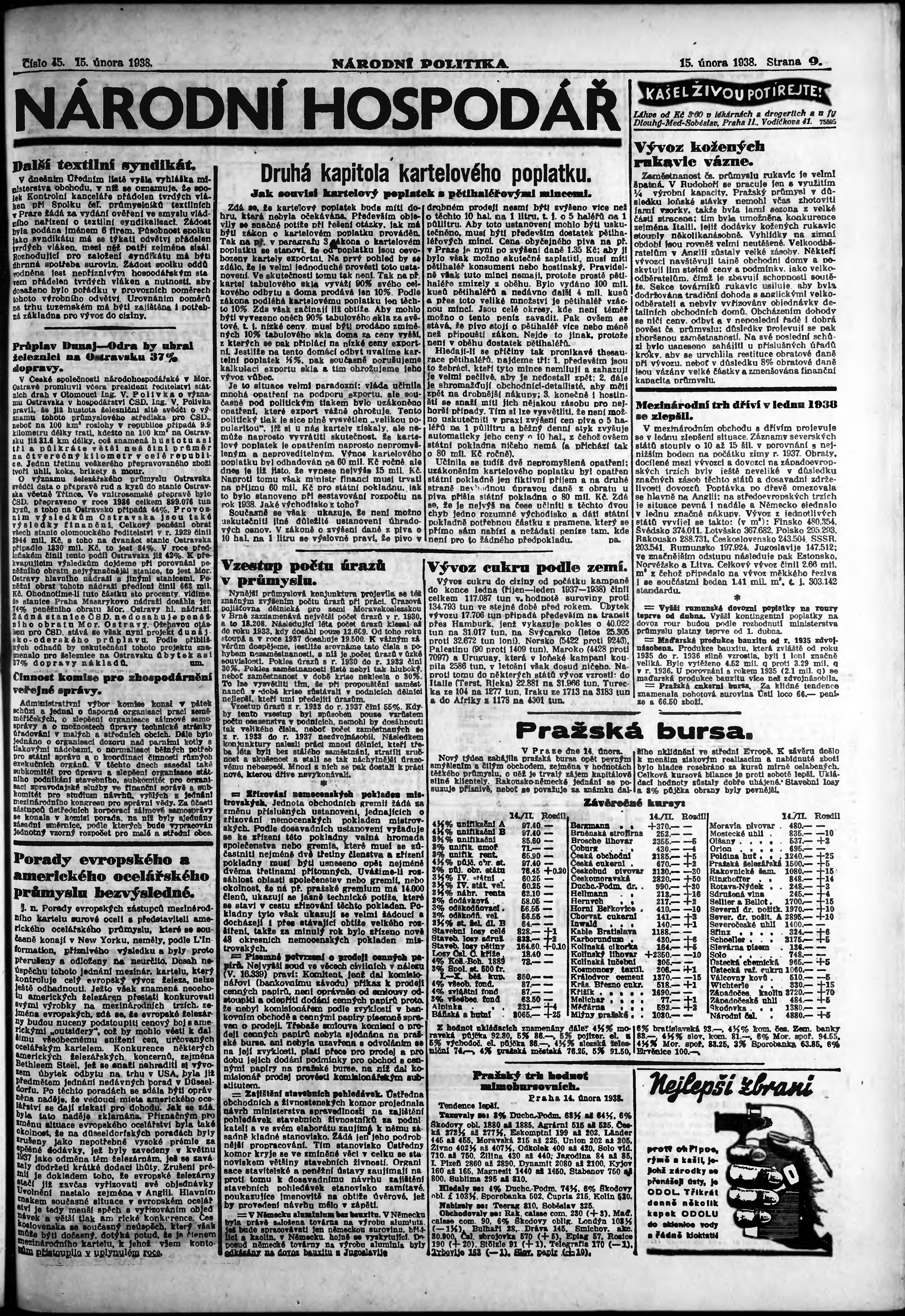 * Datum vydání výtisku: 15.2.1938 Číslo výtisku: 45 Poznámky k výtisku: ranní vydání; vydání pro Prahu;