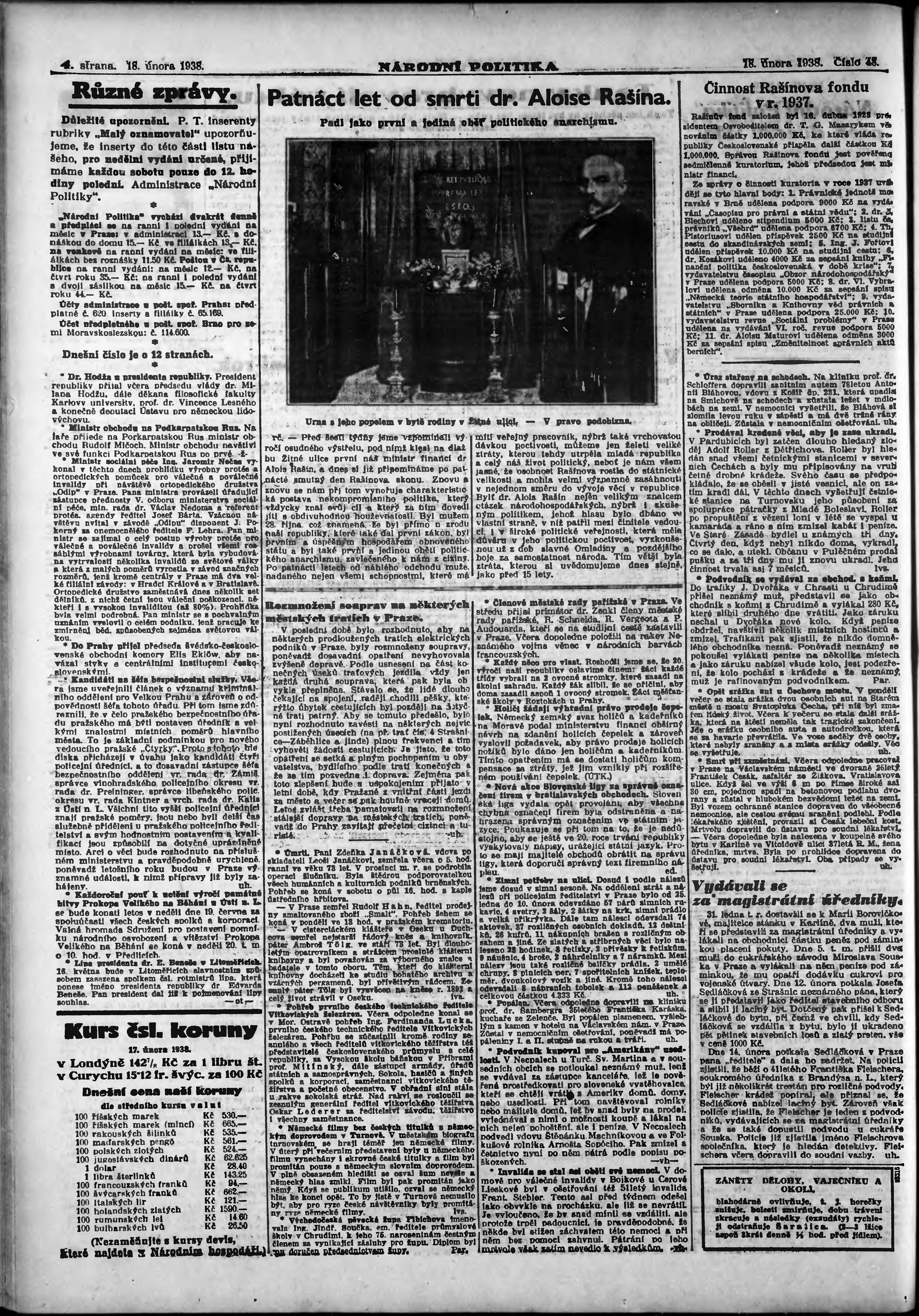 * Datum vydání výtisku: 18.2.1938 Číslo výtisku: 48 Poznámky k výtisku: ranní vydání; vydání pro Prahu;