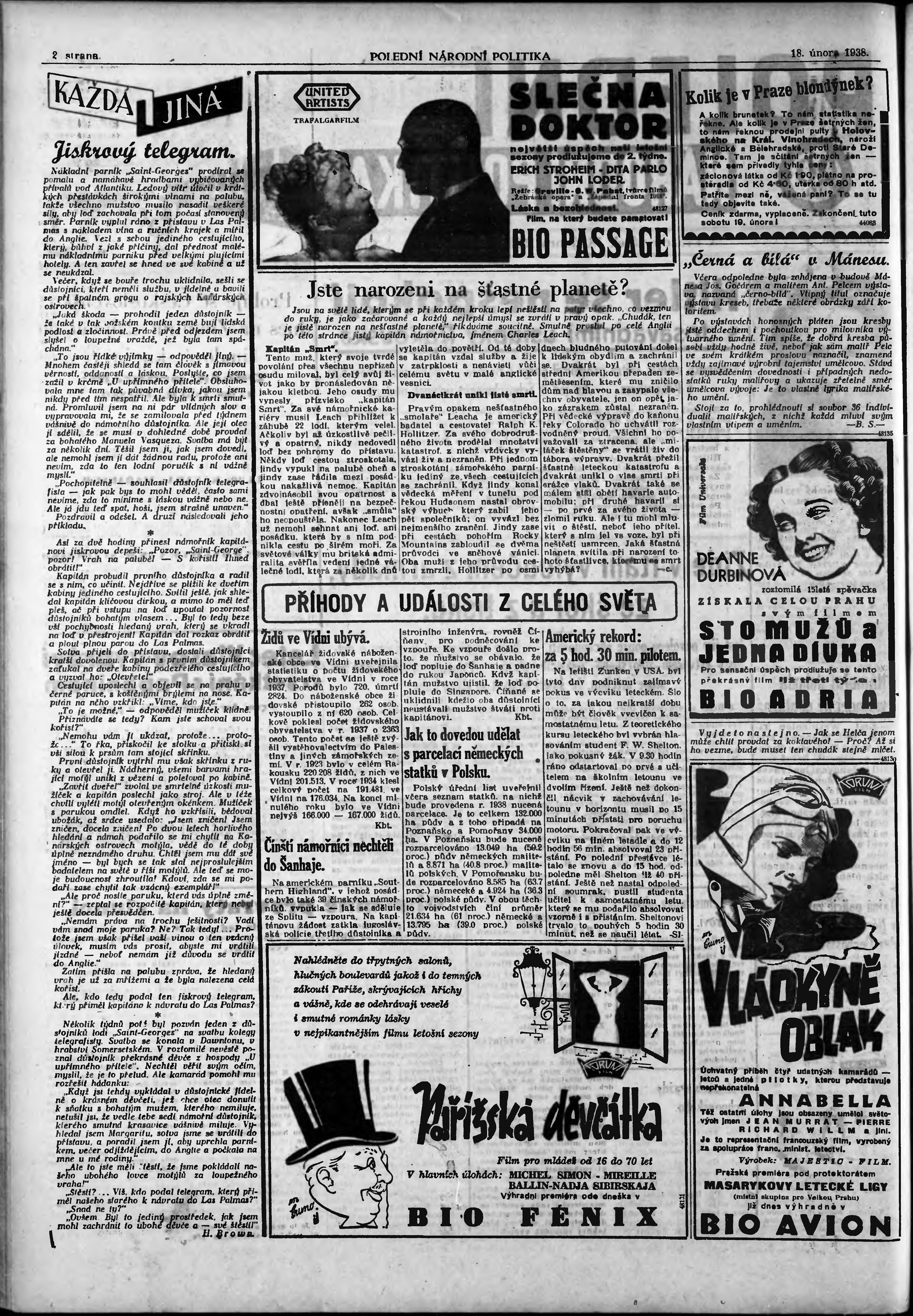 * Datum vydání výtisku: 18.2.1938 Číslo výtisku: 48 Poznámky k výtisku: polední vydání;