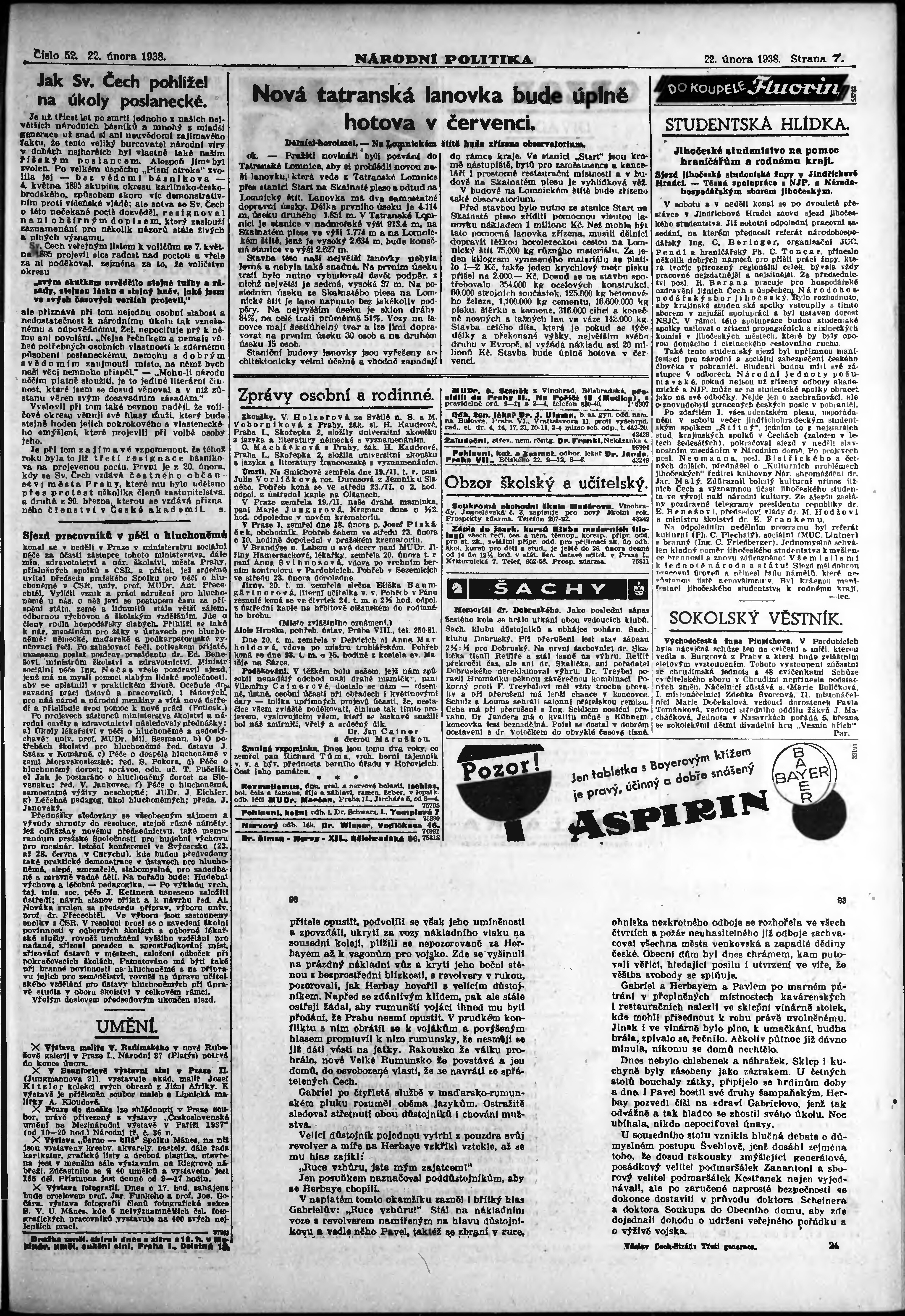 * Datum vydání výtisku: 22.2.1938 Číslo výtisku: 52 Poznámky k výtisku: ranní vydání; vydání pro Prahu;