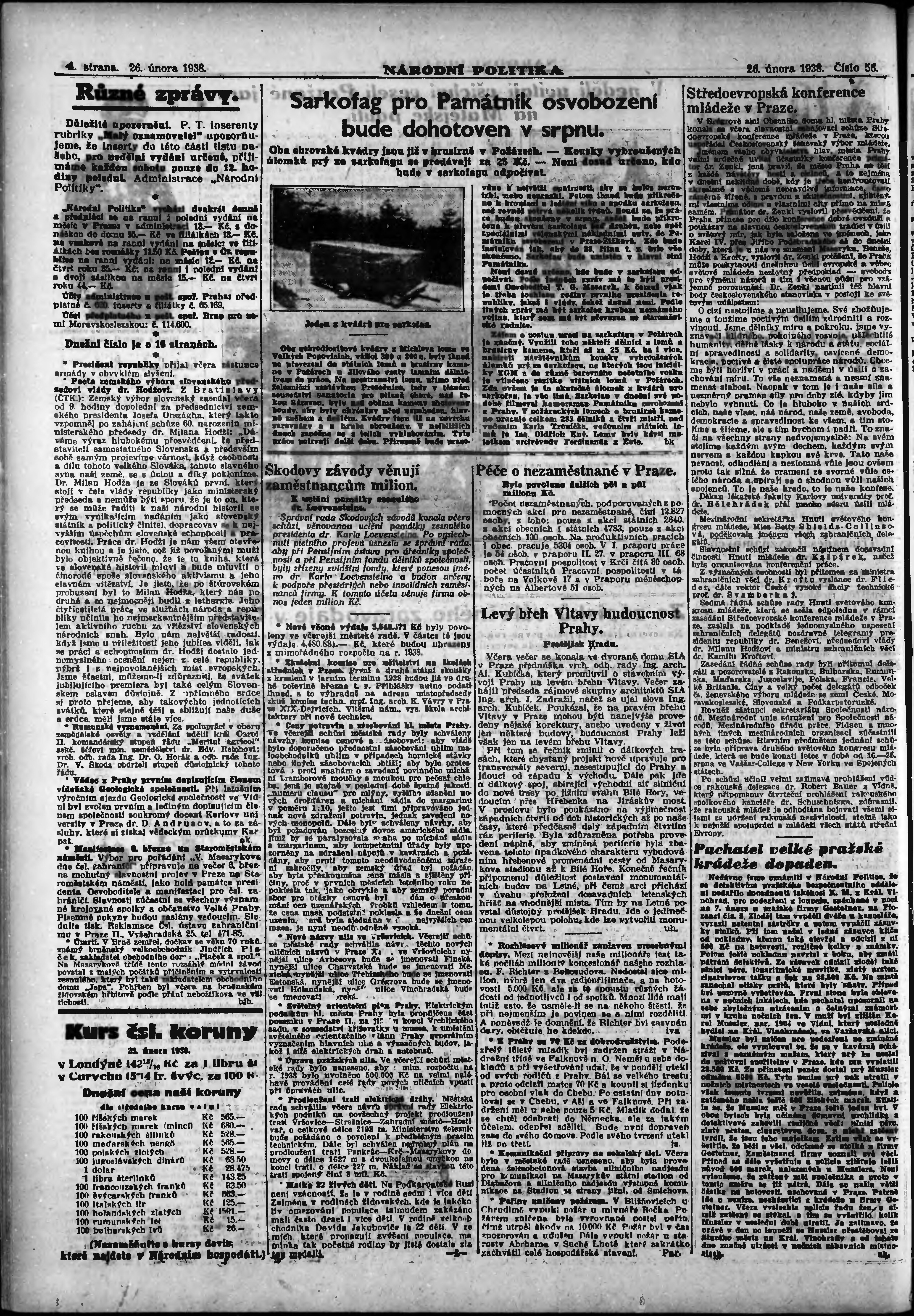 * Datum vydání výtisku: 26.2.1938 Číslo výtisku: 56 Poznámky k výtisku: ranní vydání; vydání pro Prahu;