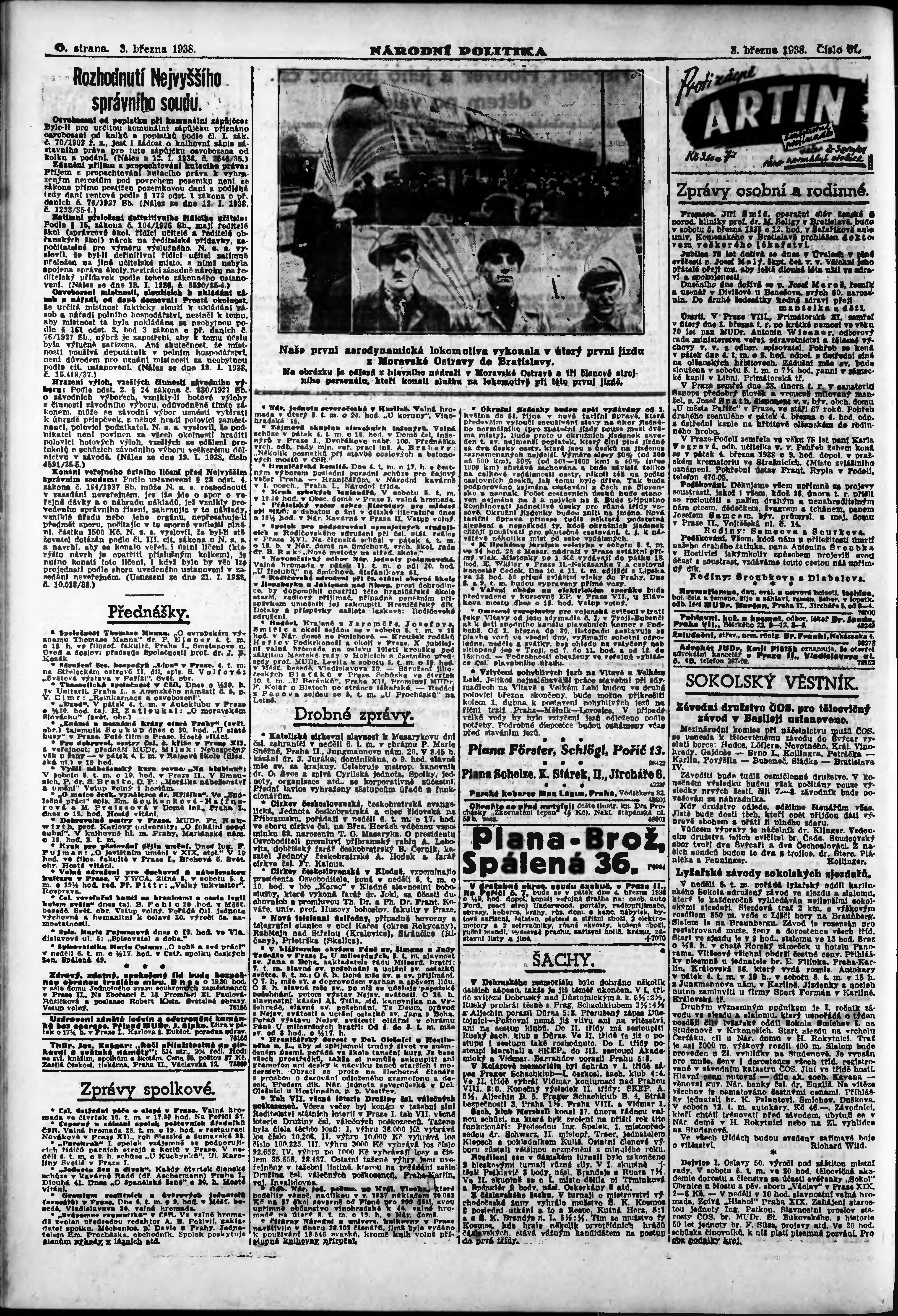 * Datum vydání výtisku: 3.3.1938 Číslo výtisku: 61 Poznámky k výtisku: ranní vydání; vydání pro Prahu;