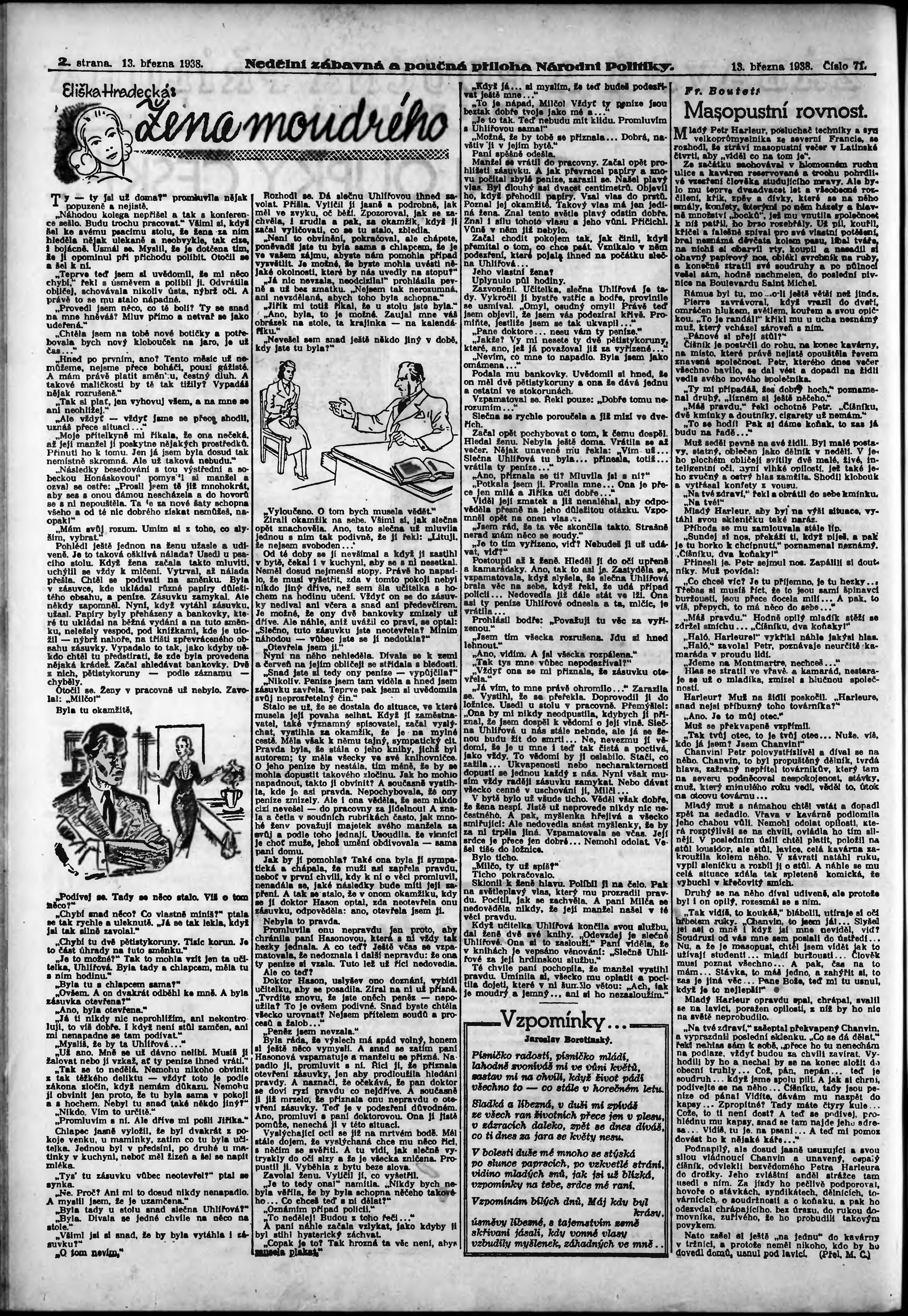 * Datum vydání výtisku: 13.3.1938 Číslo výtisku: 71 Typ výtisku: příloha