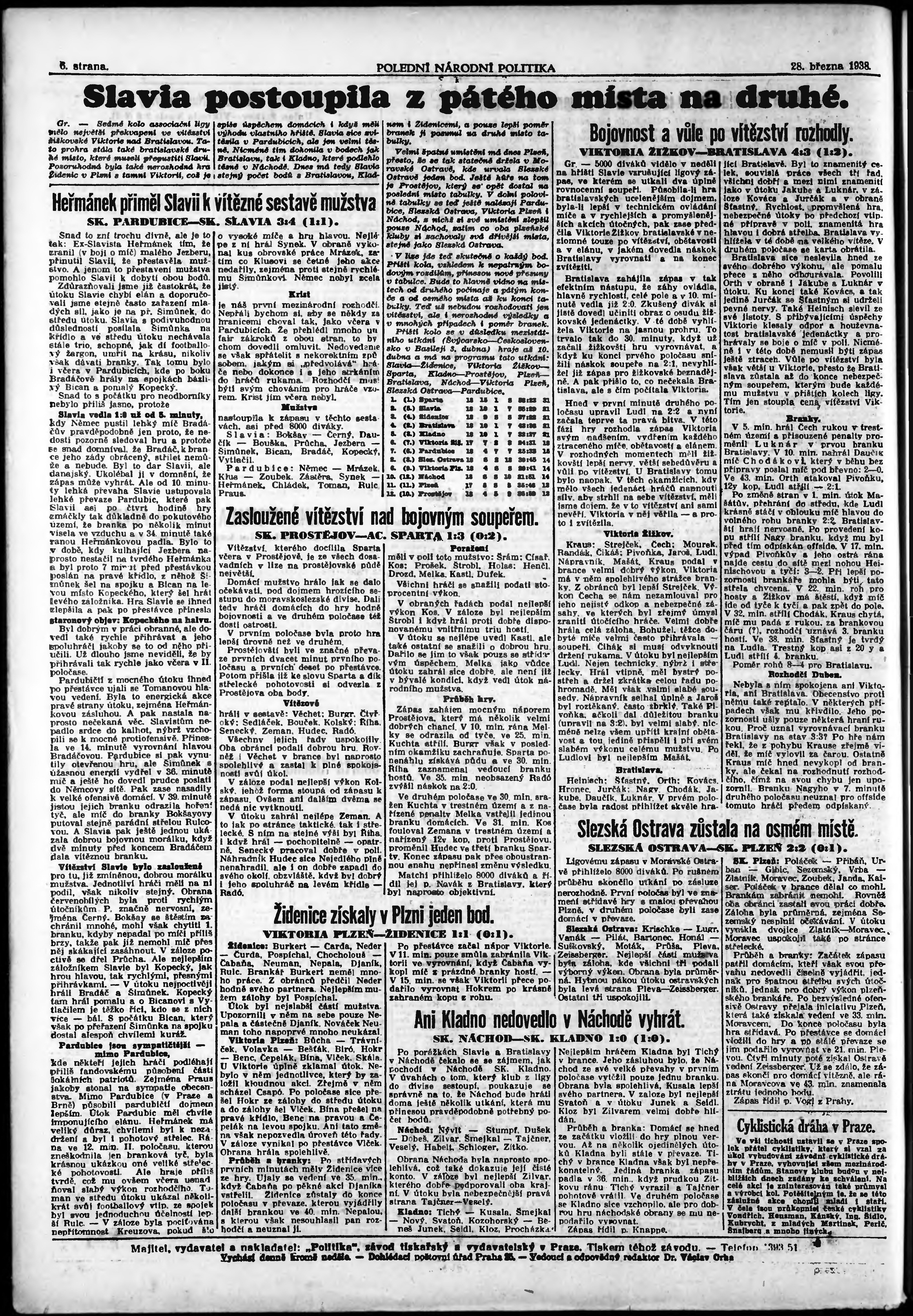 * Datum vydání výtisku: 28.3.1938 Číslo výtisku: 86 Poznámky k výtisku: polední vydání;