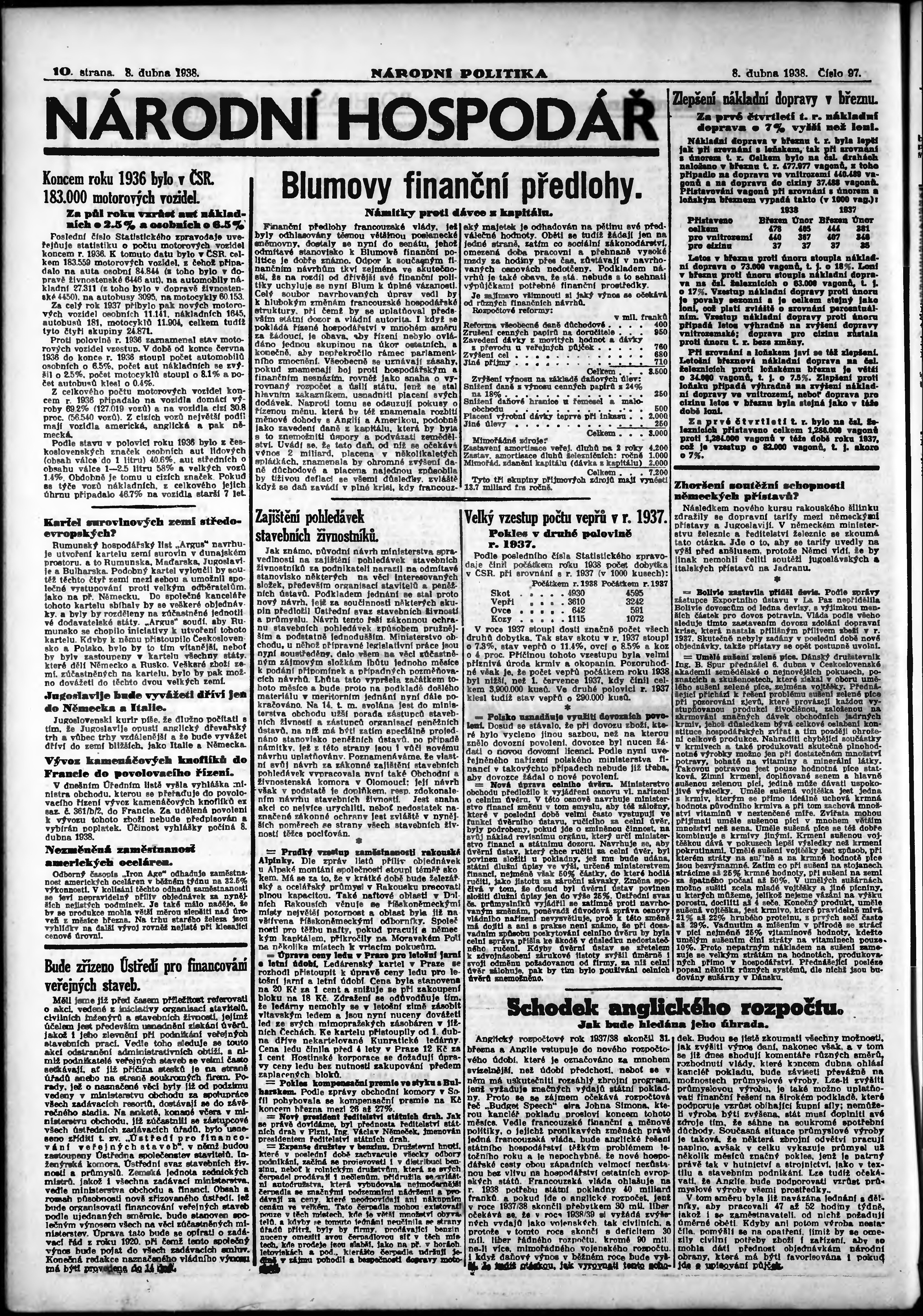 * Datum vydání výtisku: 8.4.1938 Číslo výtisku: 97 Poznámky k výtisku: ranní vydání; vydání pro Prahu;