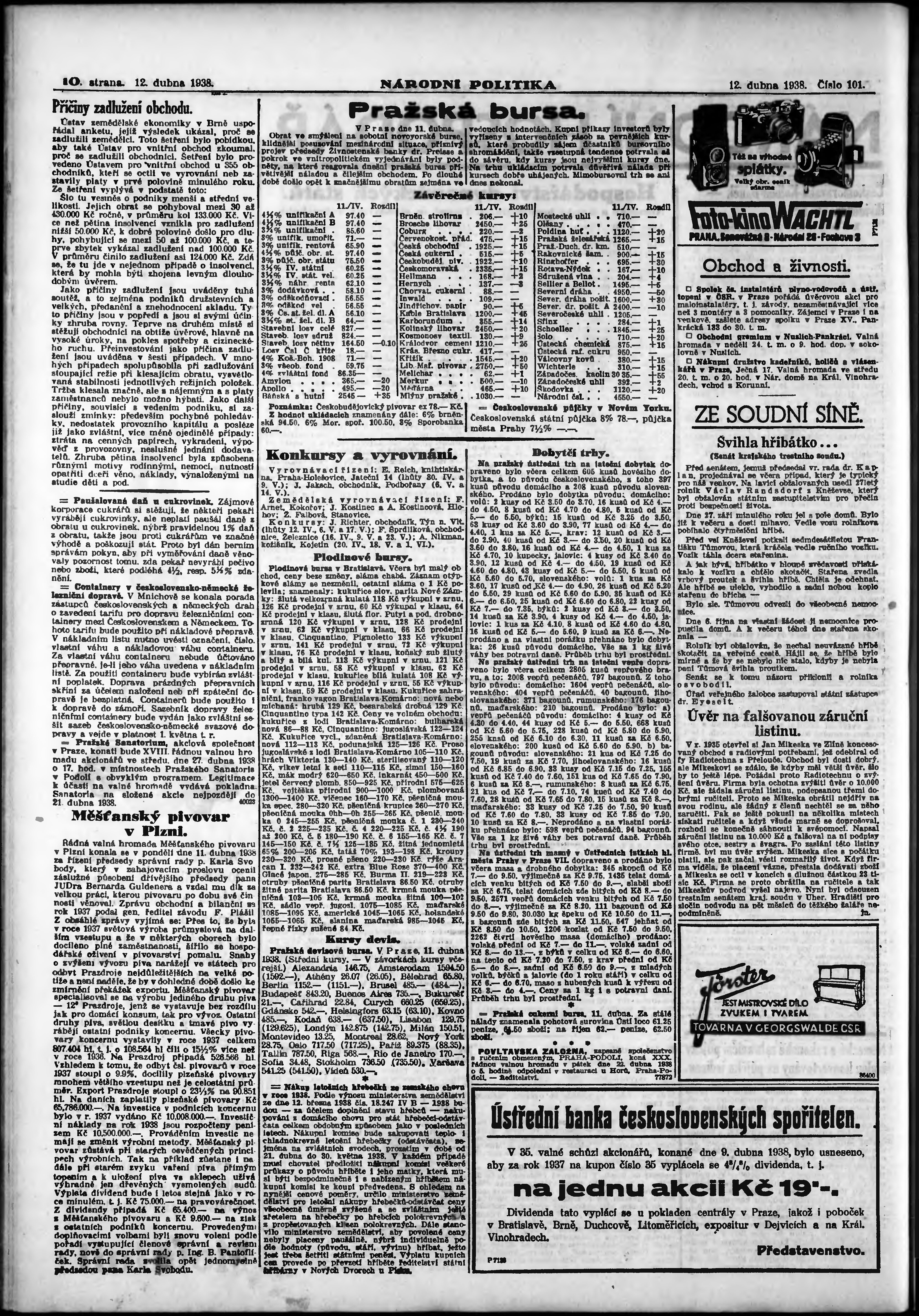 * Datum vydání výtisku: 12.4.1938 Číslo výtisku: 101 Poznámky k výtisku: ranní vydání; vydání pro Prahu;