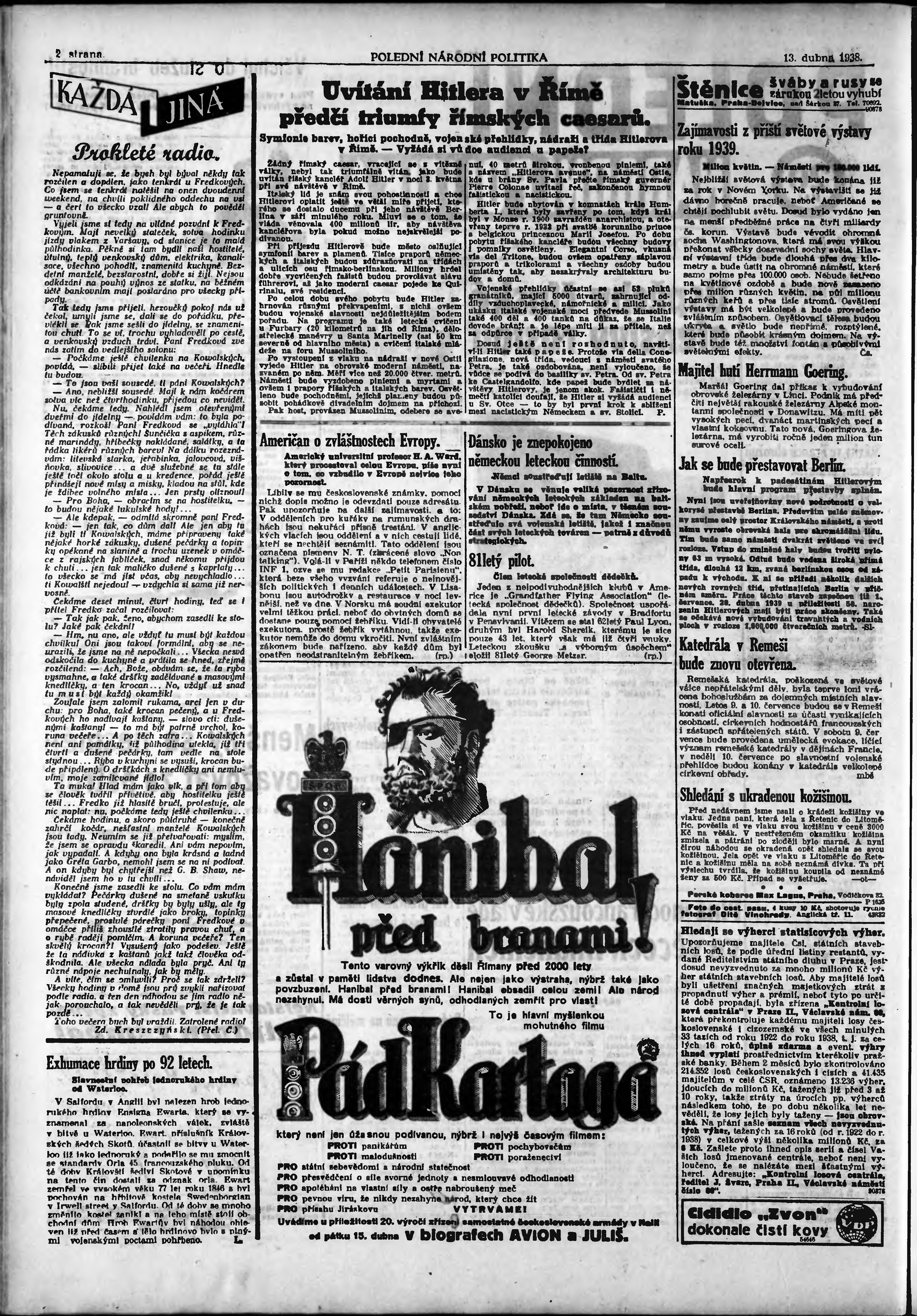 * Datum vydání výtisku: 13.4.1938 Číslo výtisku: 102 Poznámky k výtisku: polední vydání;