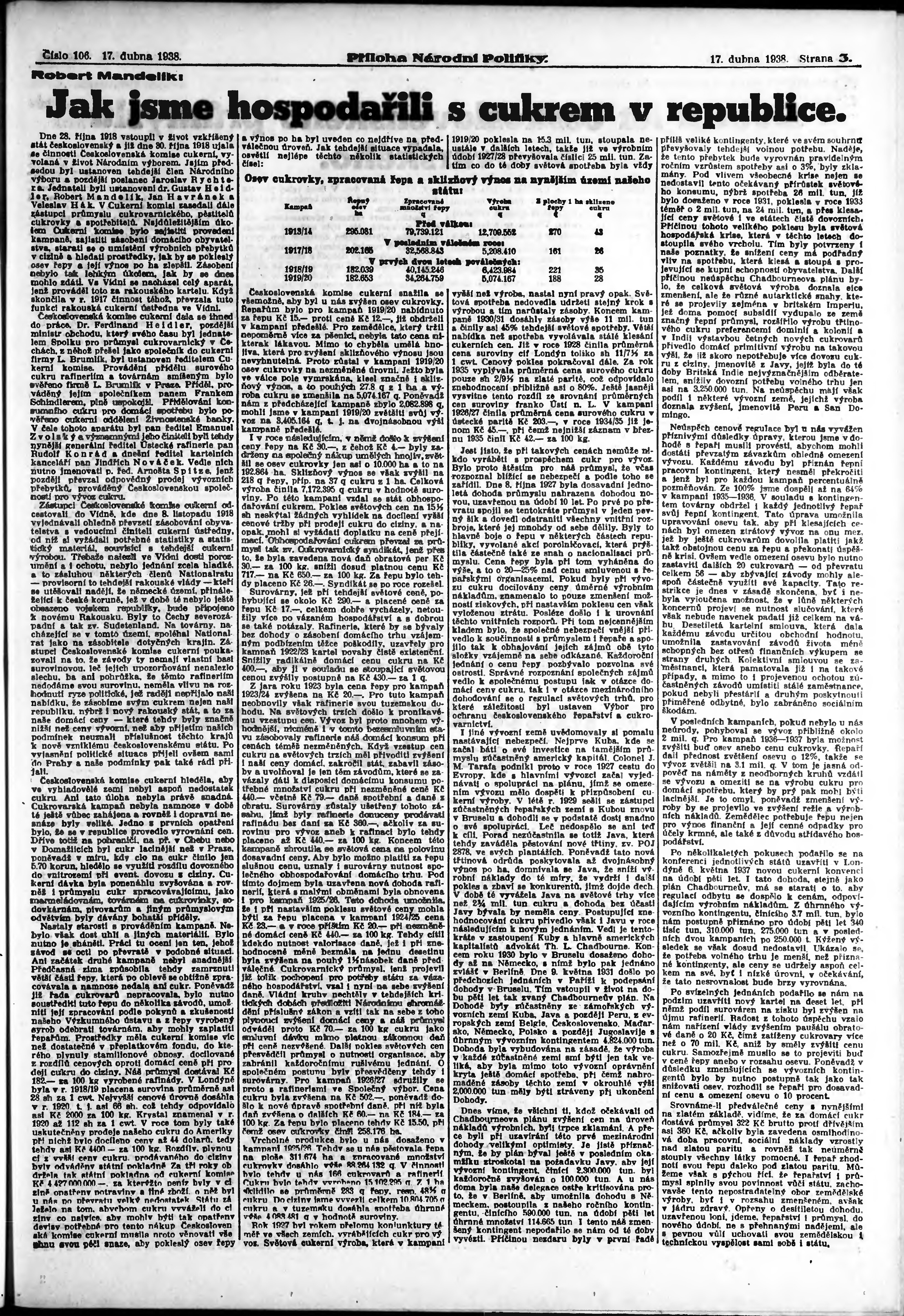 * Datum vydání výtisku: 17.4.1938 Číslo výtisku: 106 Typ výtisku: příloha