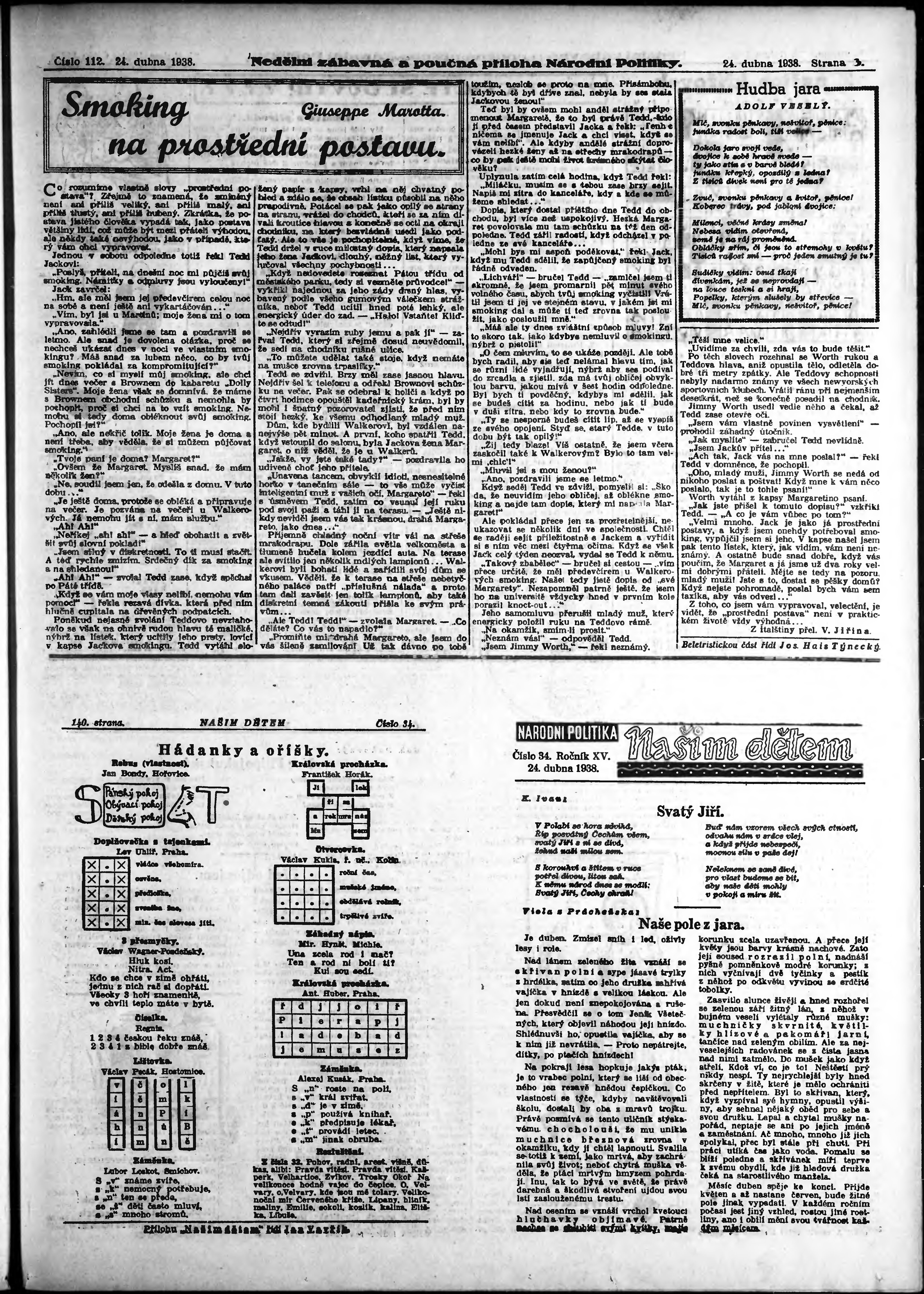 * Datum vydání výtisku: 24.4.1938 Číslo výtisku: 112 Typ výtisku: příloha