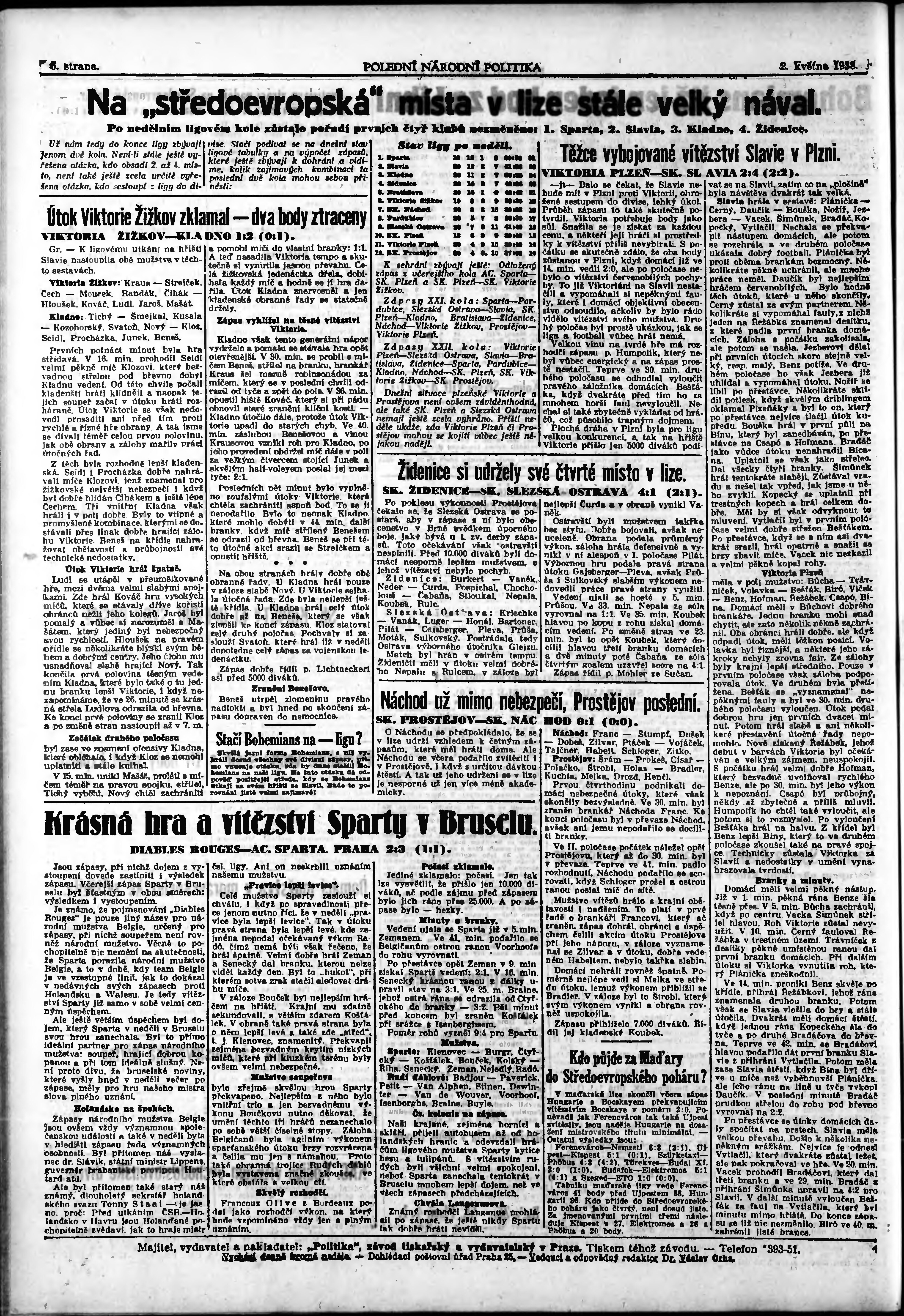 * Datum vydání výtisku: 2.5.1938 Číslo výtisku: 120 Poznámky k výtisku: polední vydání;