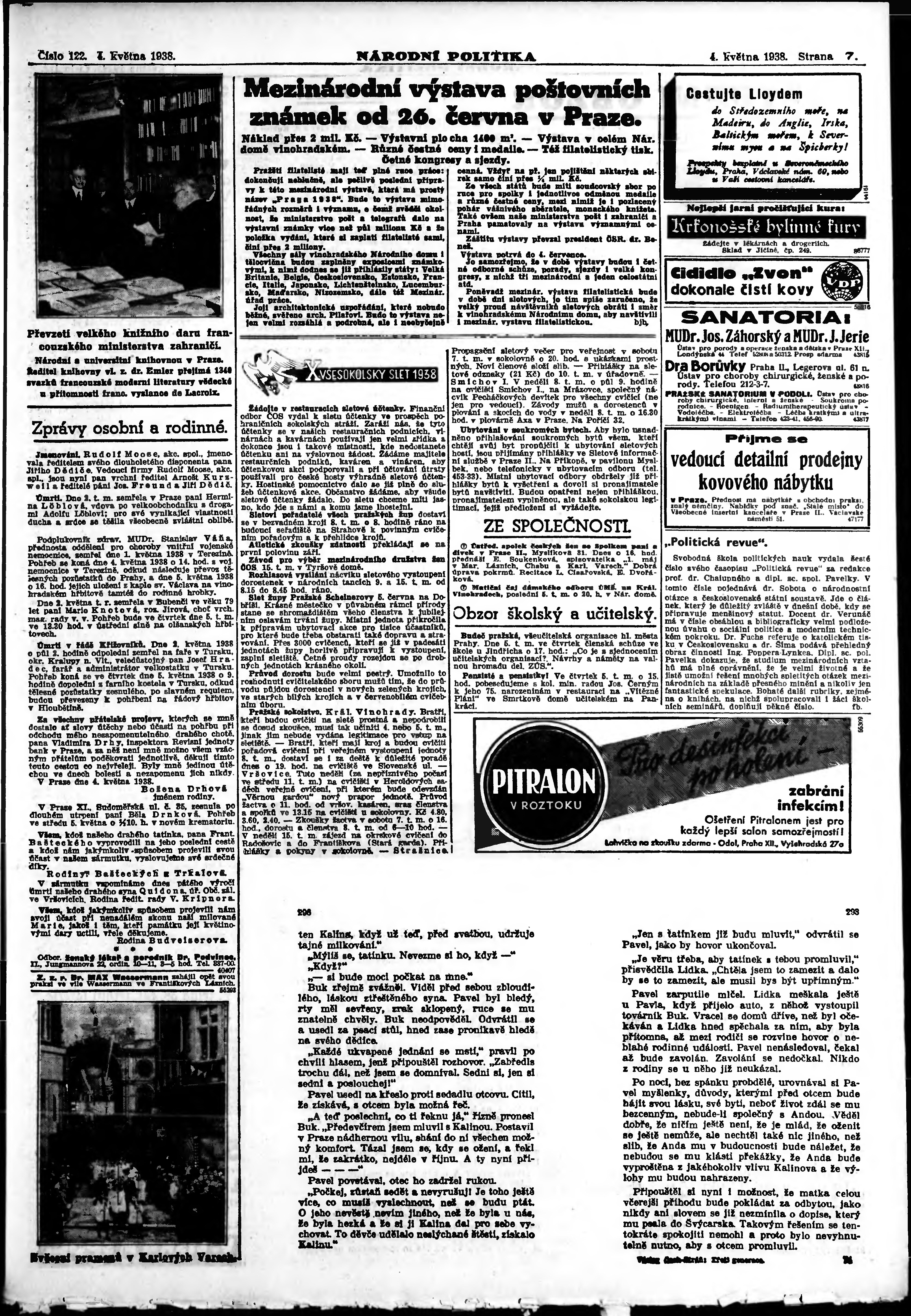 * Datum vydání výtisku: 4.5.1938 Číslo výtisku: 122 Poznámky k výtisku: ranní vydání; vydání pro Prahu;