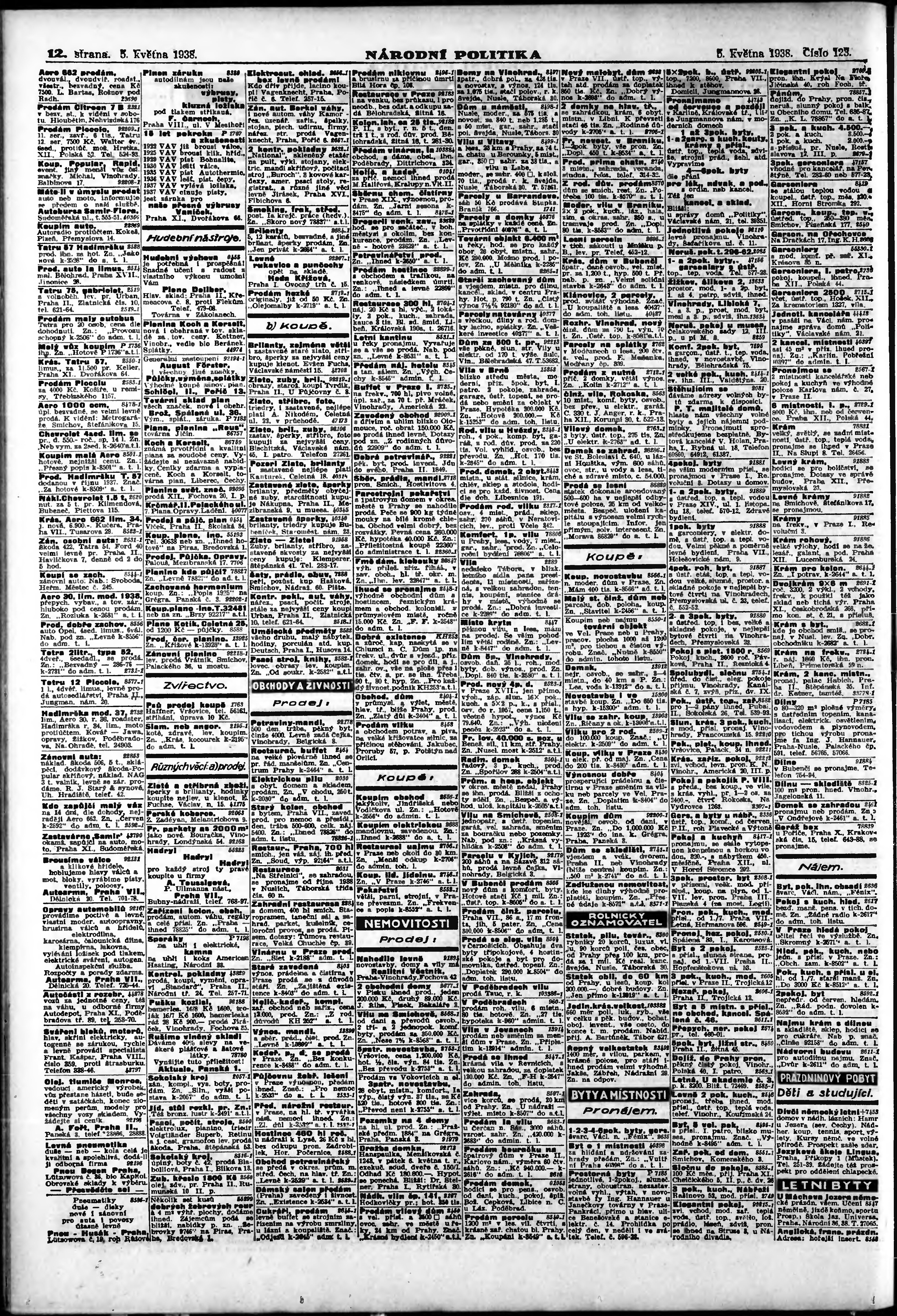 * Datum vydání výtisku: 5.5.1938 Číslo výtisku: 123 Poznámky k výtisku: ranní vydání; vydání pro Prahu;
