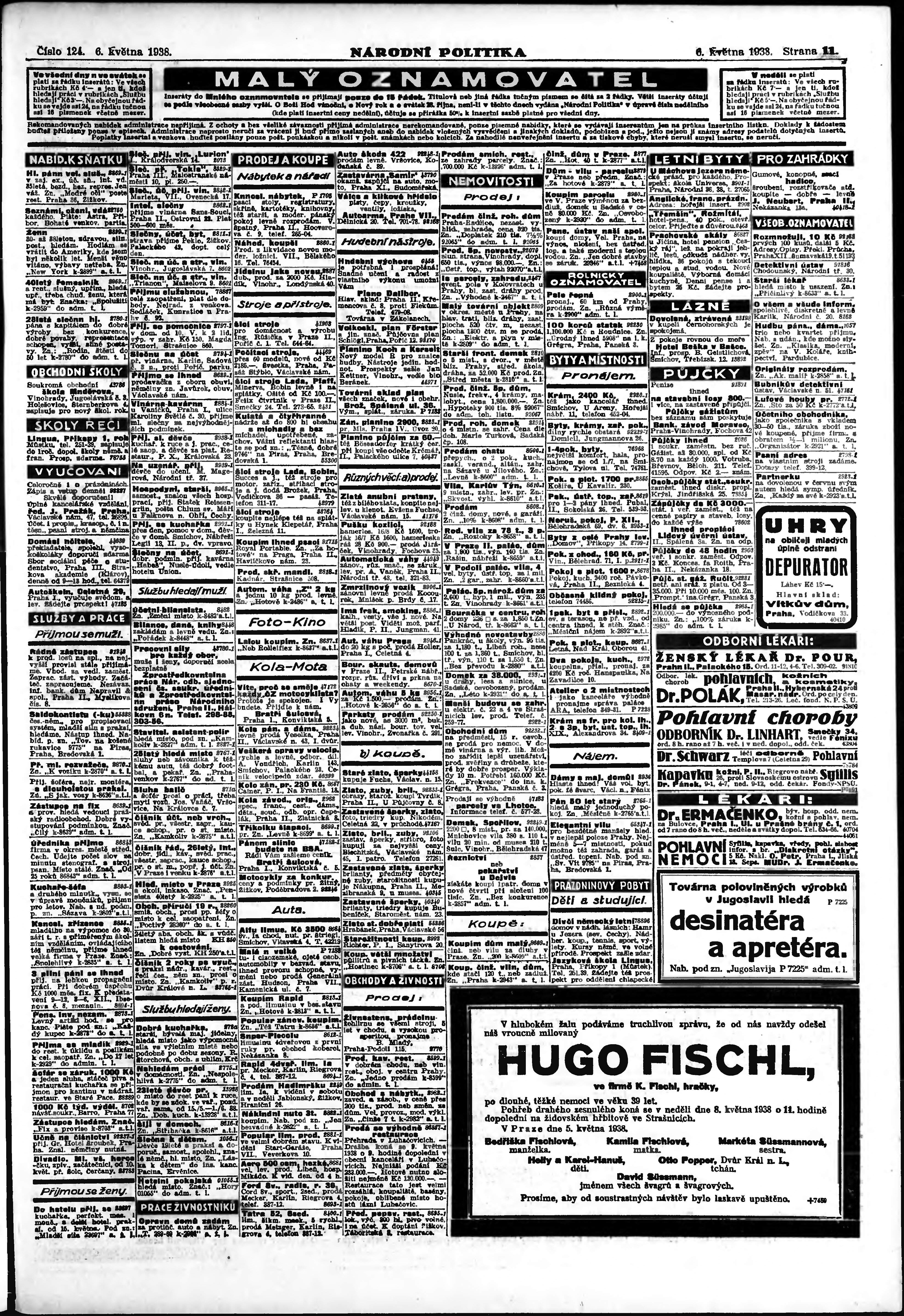 * Datum vydání výtisku: 6.5.1938 Číslo výtisku: 124 Poznámky k výtisku: ranní vydání; vydání pro Prahu;