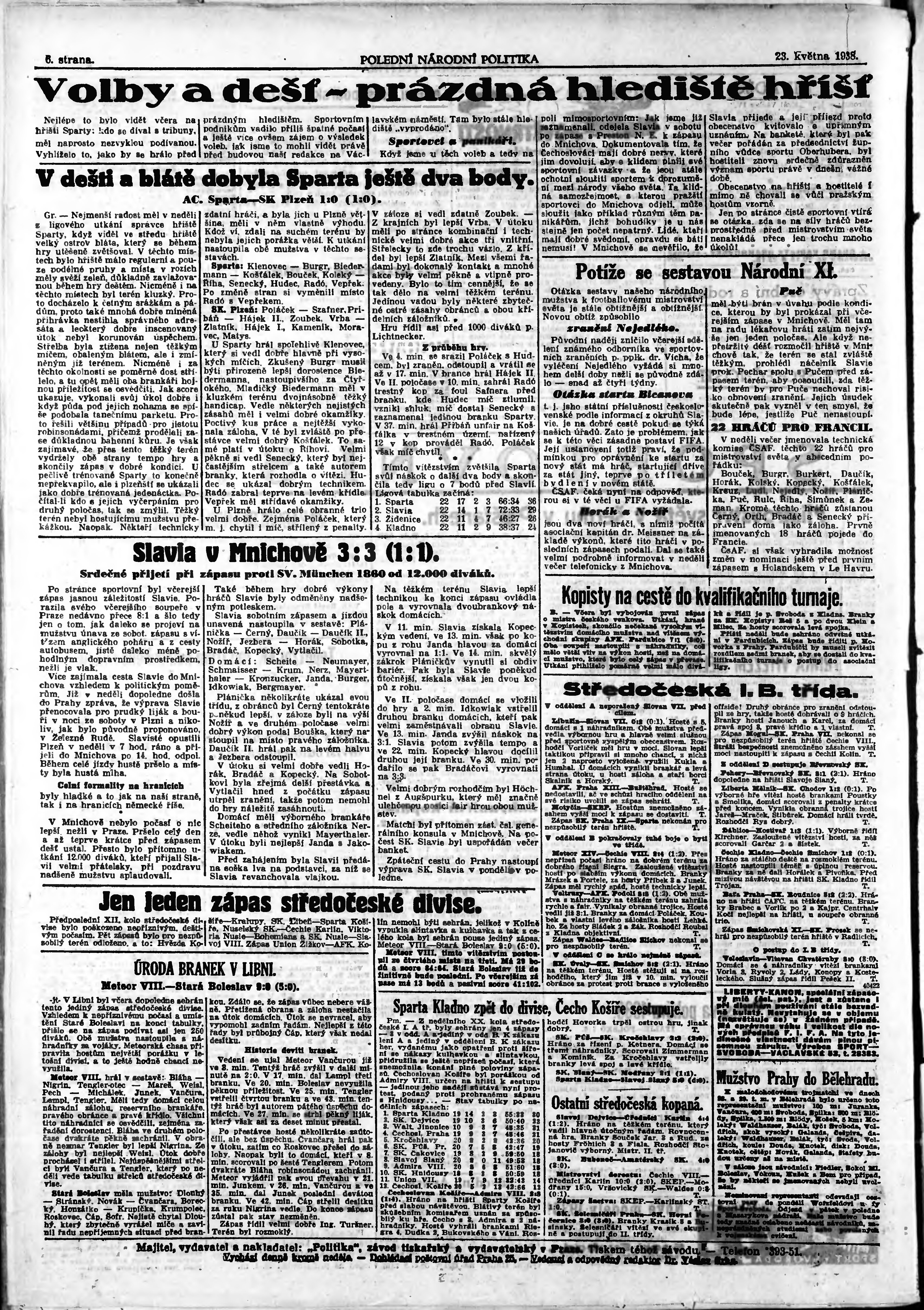 * Datum vydání výtisku: 23.5.1938 Číslo výtisku: 141 Poznámky k výtisku: polední vydání;