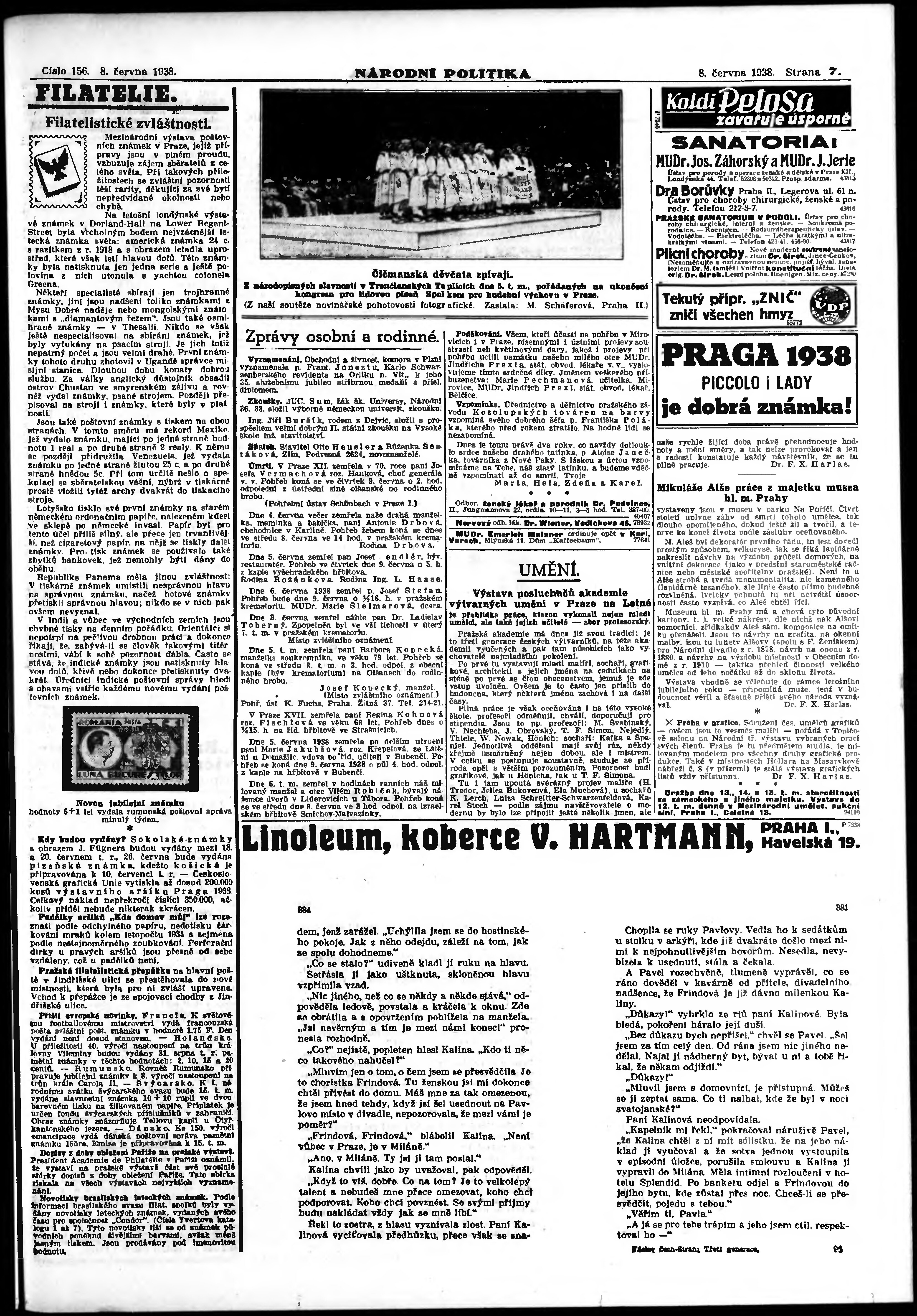 * Datum vydání výtisku: 8.6.1938 Číslo výtisku: 156 Poznámky k výtisku: ranní vydání; vydání pro Prahu;