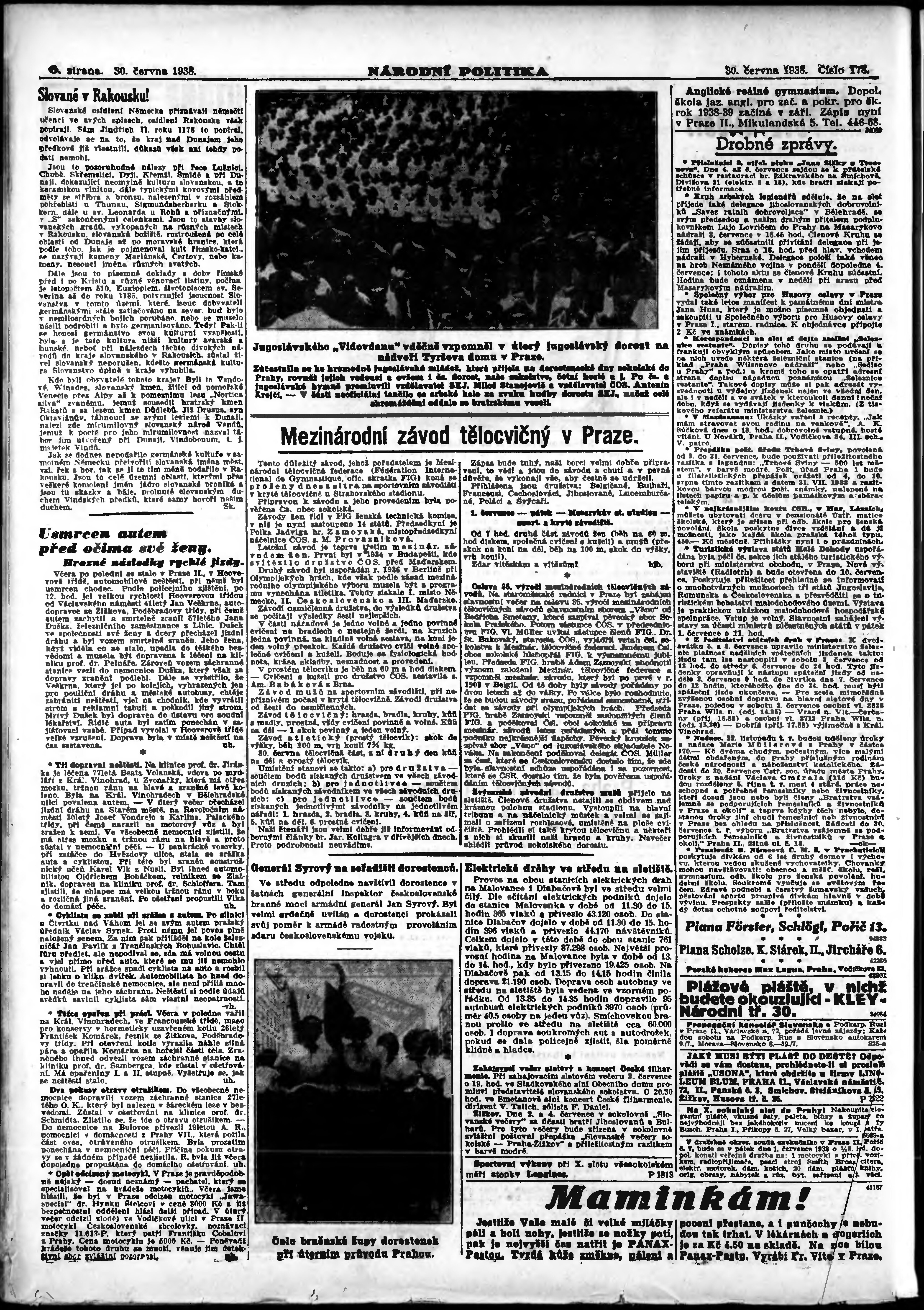 * Datum vydání výtisku: 30.6.1938 Číslo výtisku: 178 Poznámky k výtisku: ranní vydání; vydání pro Prahu;