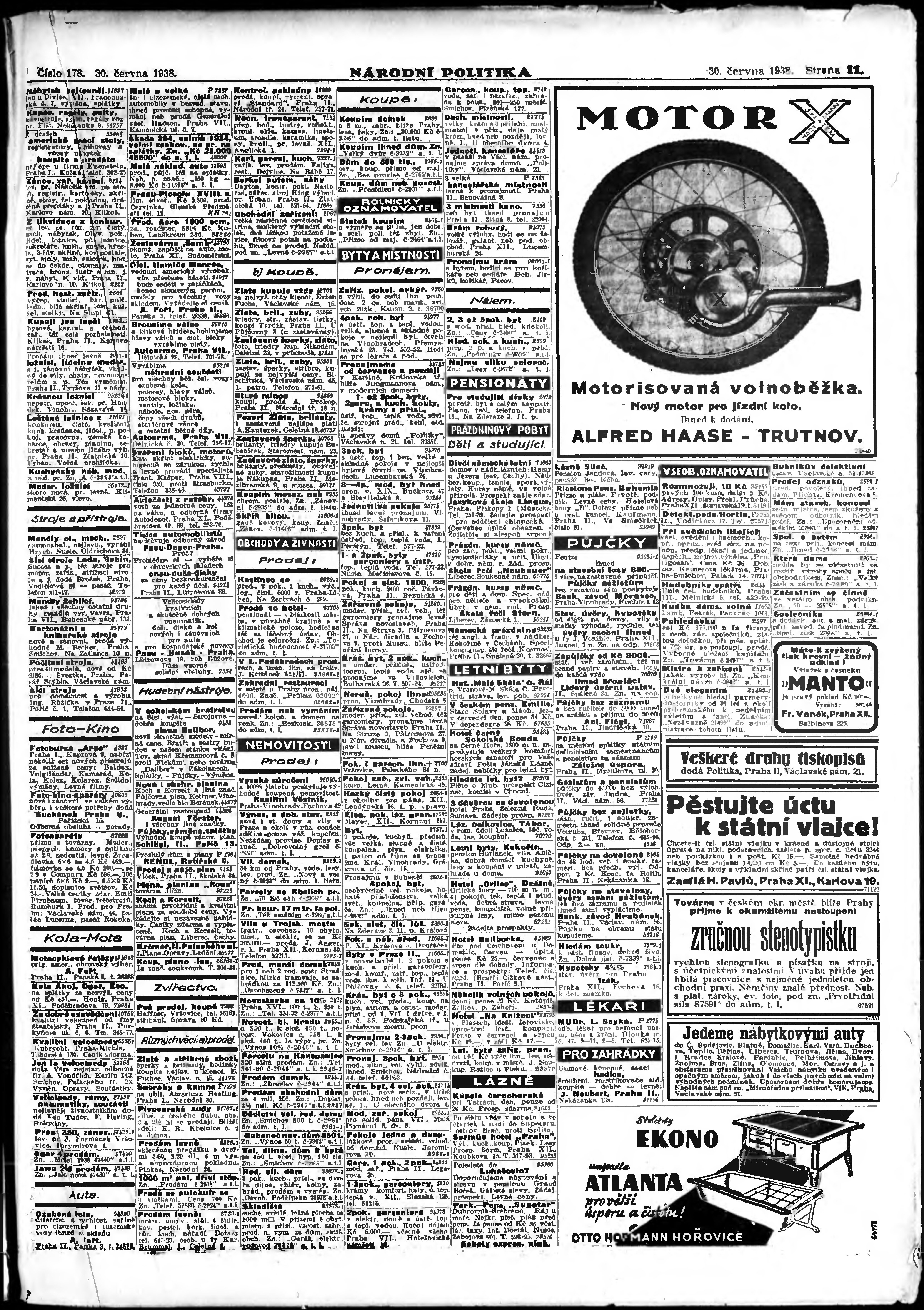 * Datum vydání výtisku: 30.6.1938 Číslo výtisku: 178 Poznámky k výtisku: ranní vydání; vydání pro Prahu;