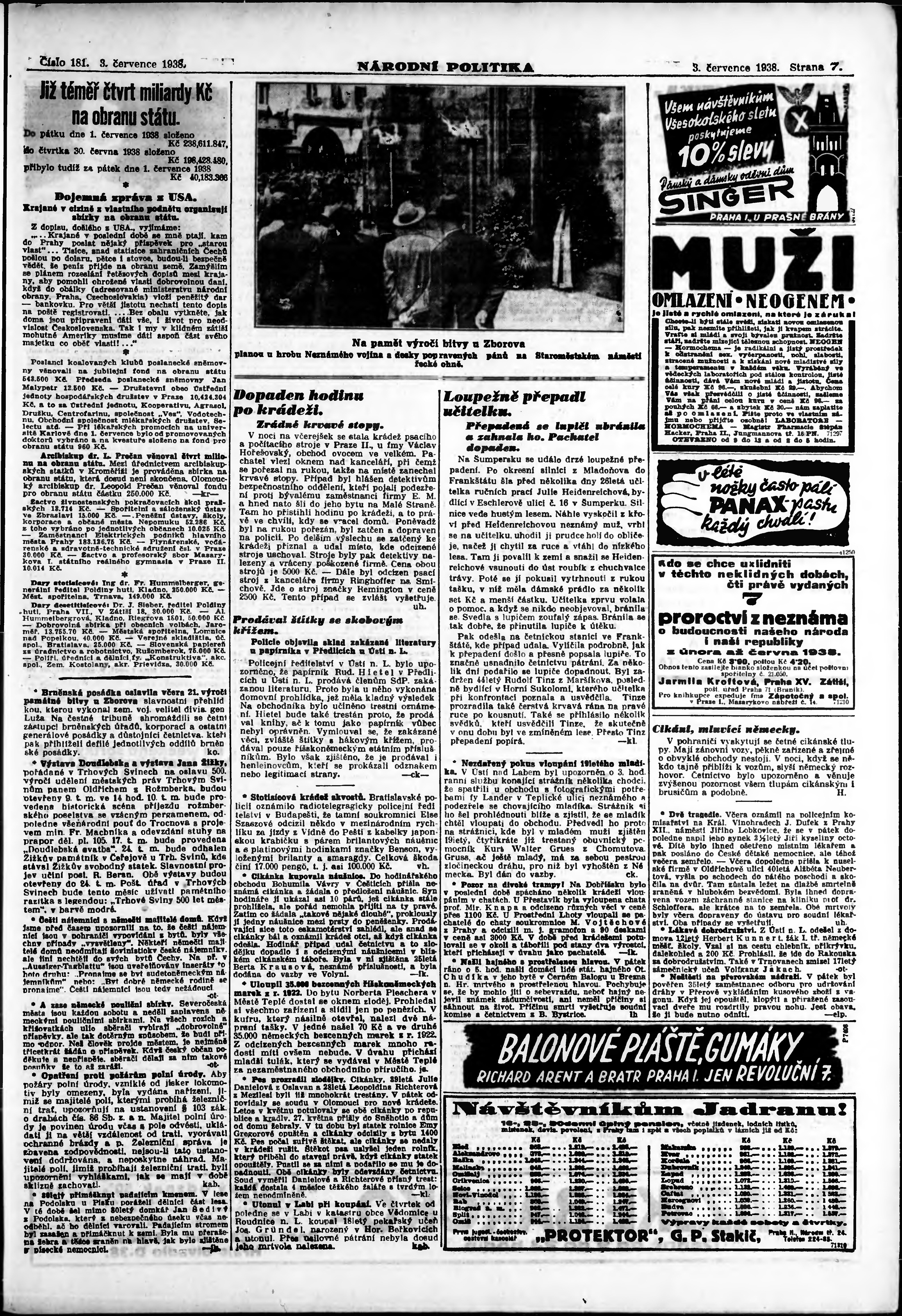 * Datum vydání výtisku: 3.7.1938 Číslo výtisku: 181 Poznámky k výtisku: ranní vydání;