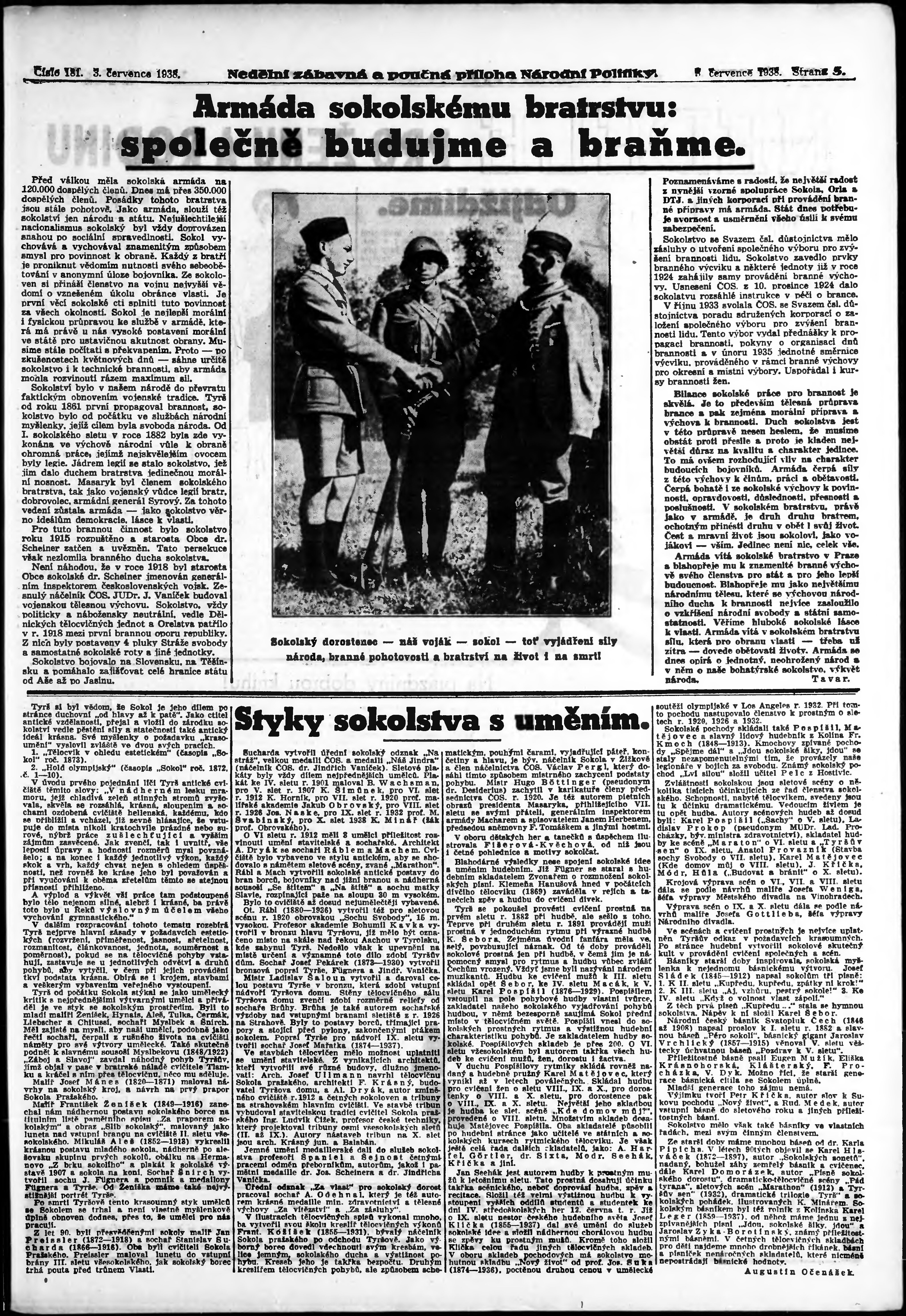 * Datum vydání výtisku: 3.7.1938 Číslo výtisku: 181 Typ výtisku: příloha