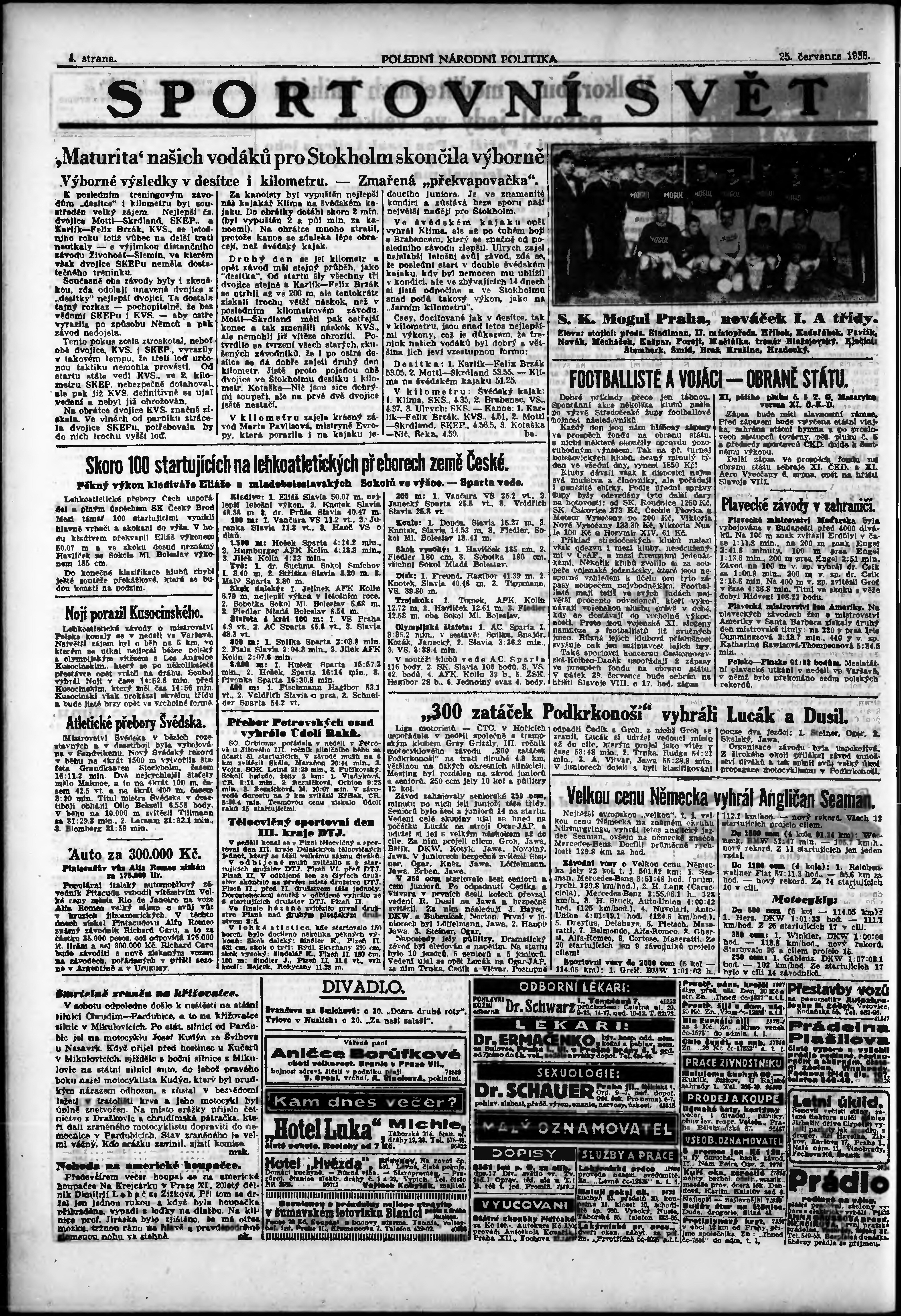 * Datum vydání výtisku: 25.7.1938 Číslo výtisku: 202 Poznámky k výtisku: polední vydání;
