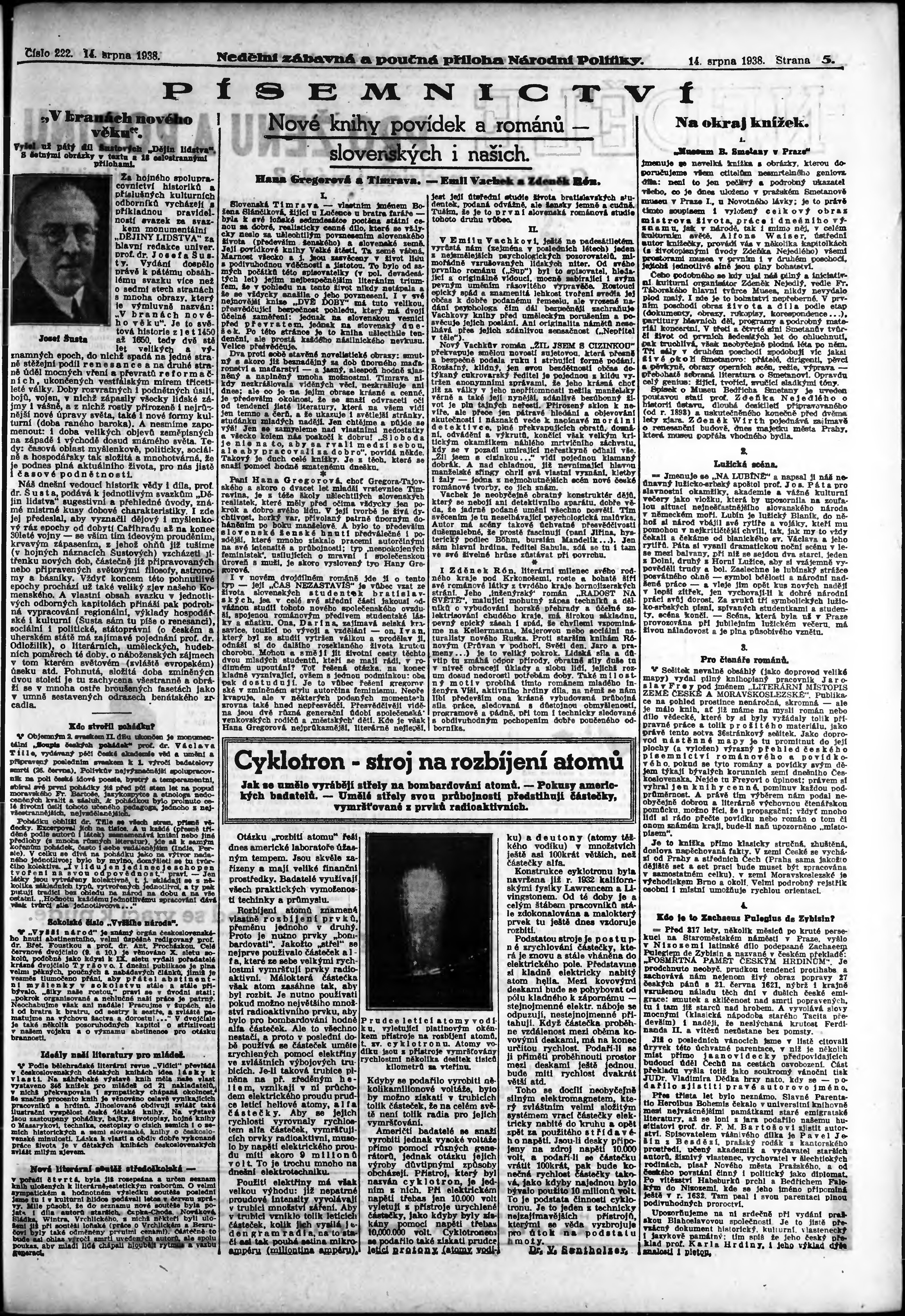 * Datum vydání výtisku: 14.8.1938 Číslo výtisku: 222 Typ výtisku: příloha