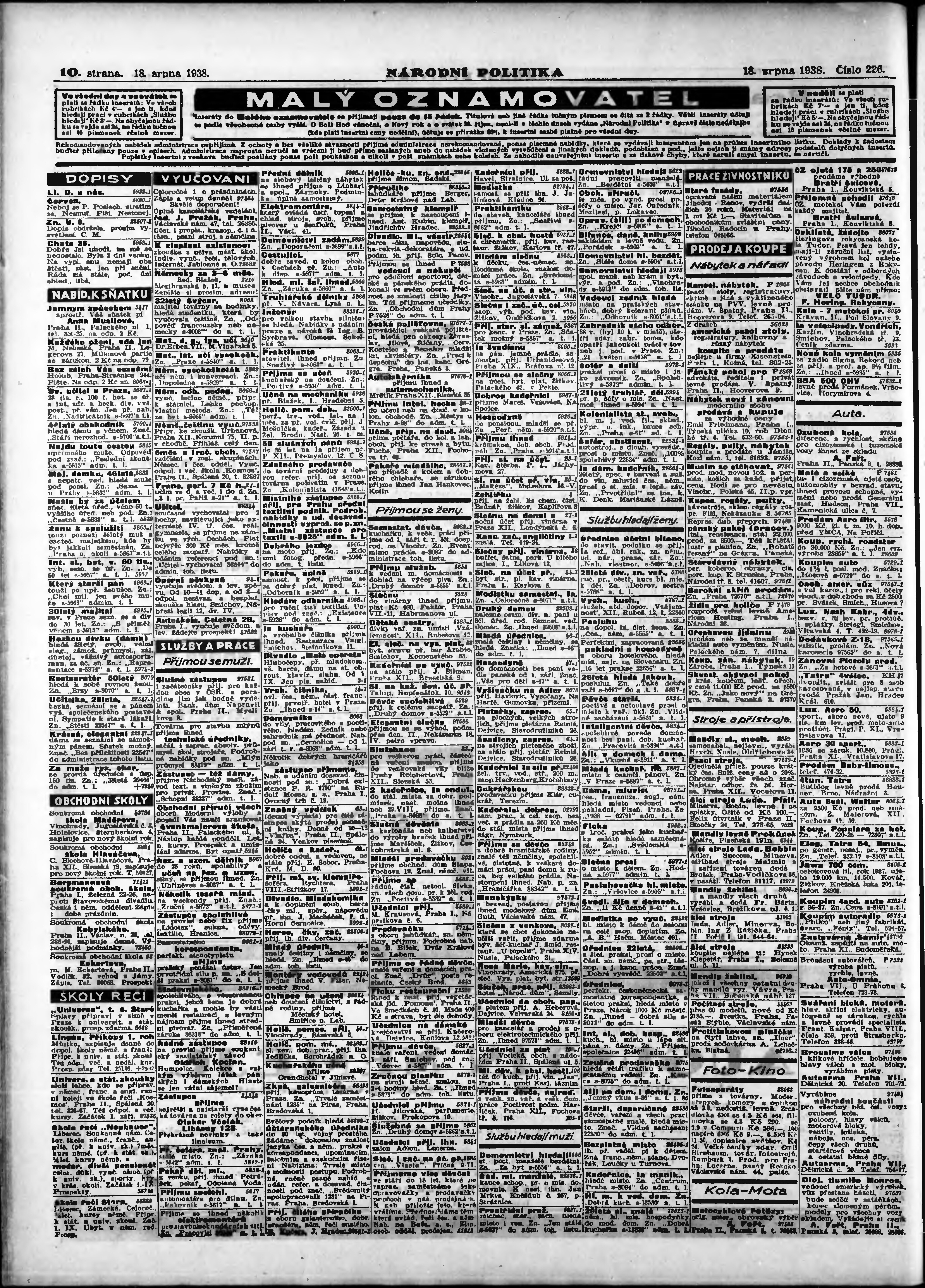 ranní vydání; vydání pro Prahu;