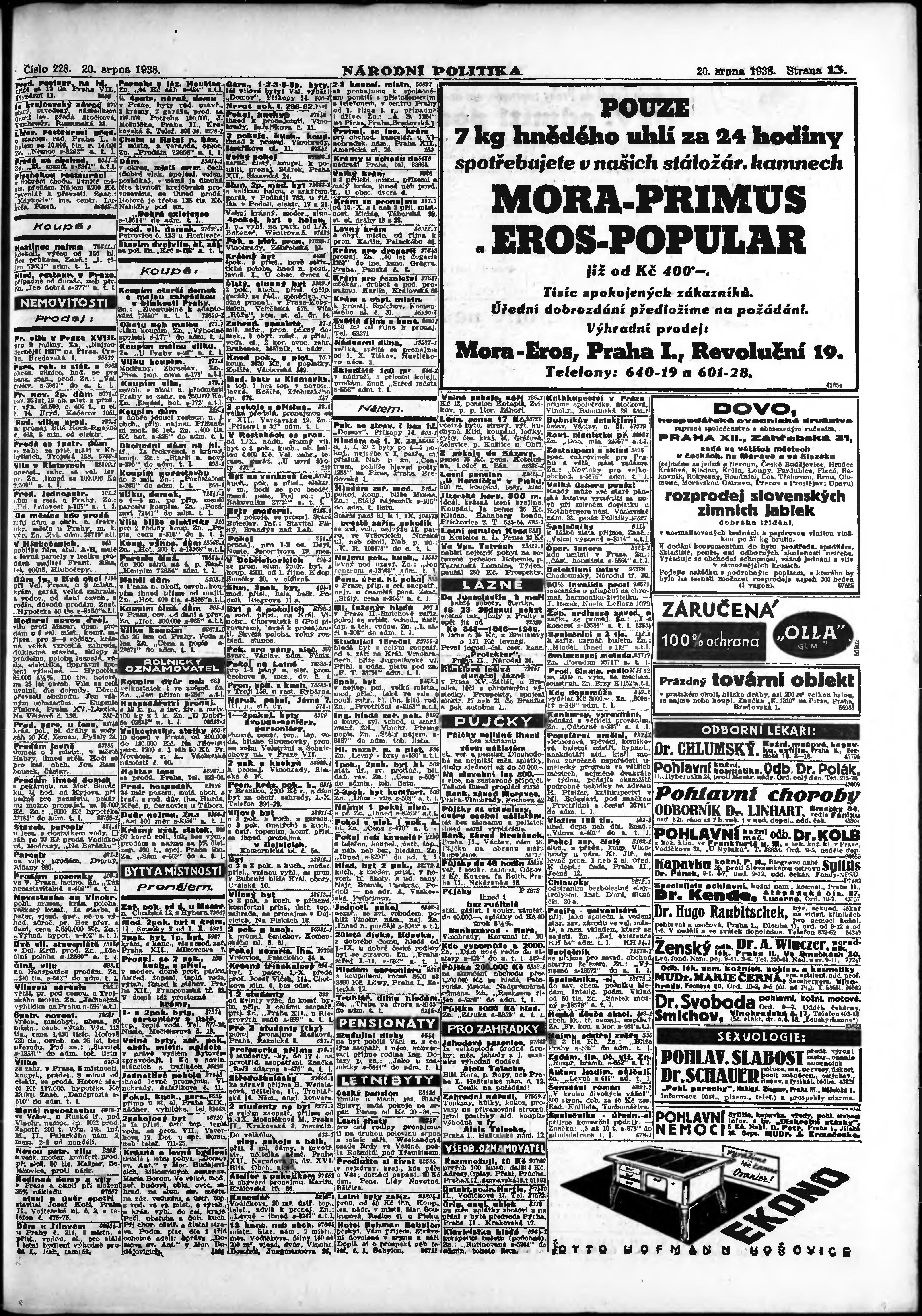 * Datum vydání výtisku: 20.8.1938 Číslo výtisku: 228 Poznámky k výtisku: ranní vydání; vydání pro Prahu;