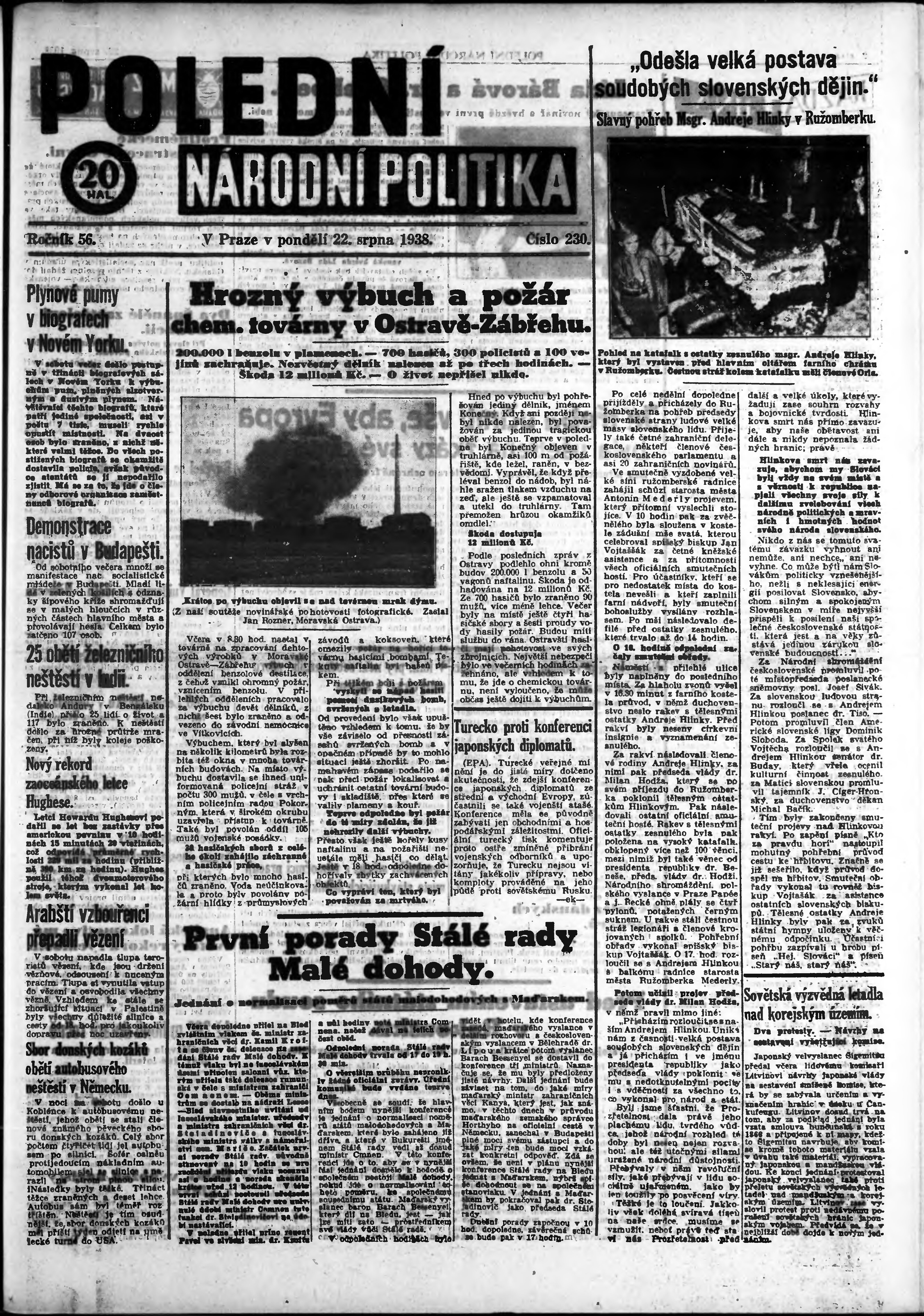* Datum vydání výtisku: 22.8.1938 Číslo výtisku: 230 Poznámky k výtisku: polední vydání;