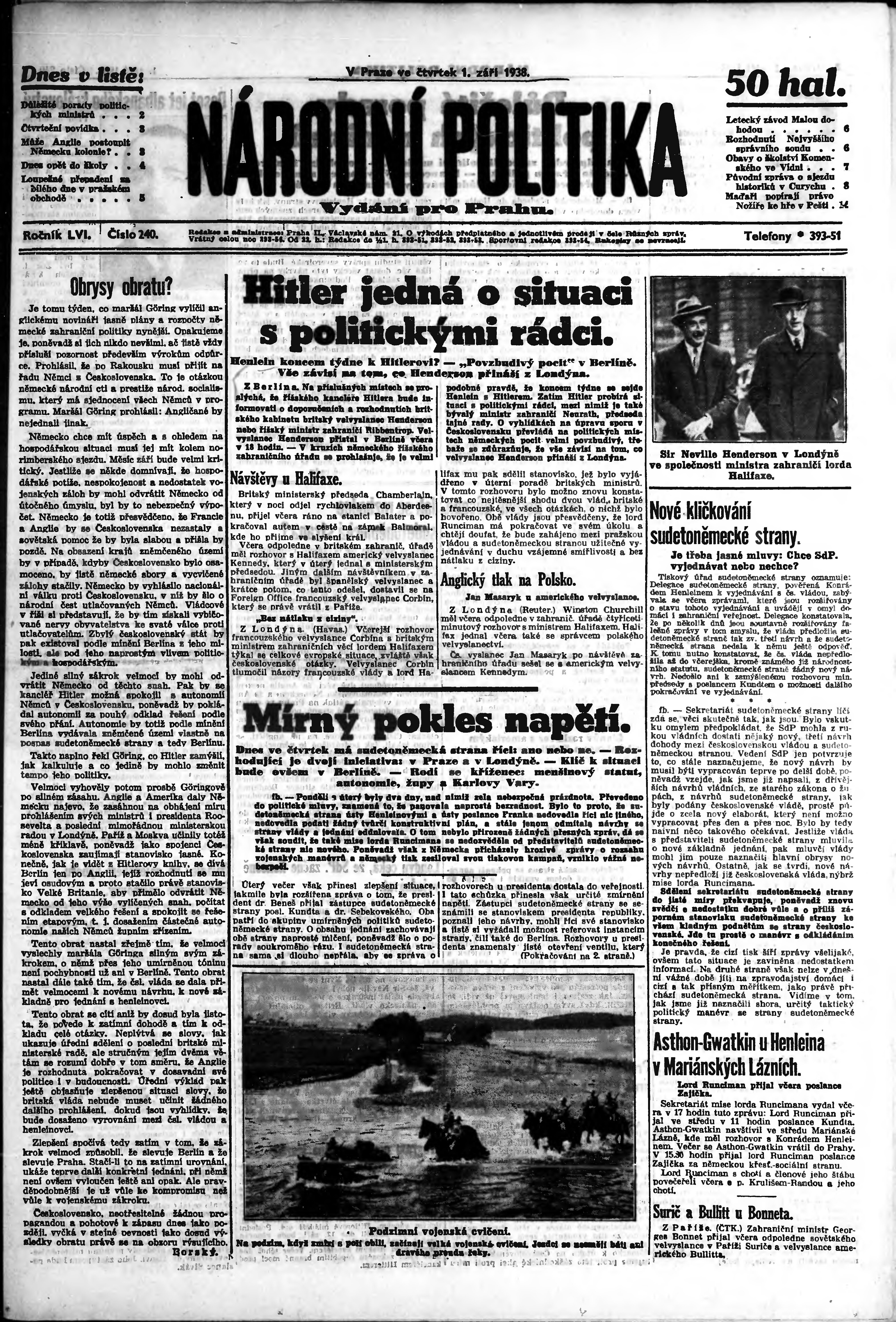 * Datum vydání výtisku: 1.9.1938 Číslo výtisku: 240 Poznámky k výtisku: ranní vydání; vydání pro Prahu;