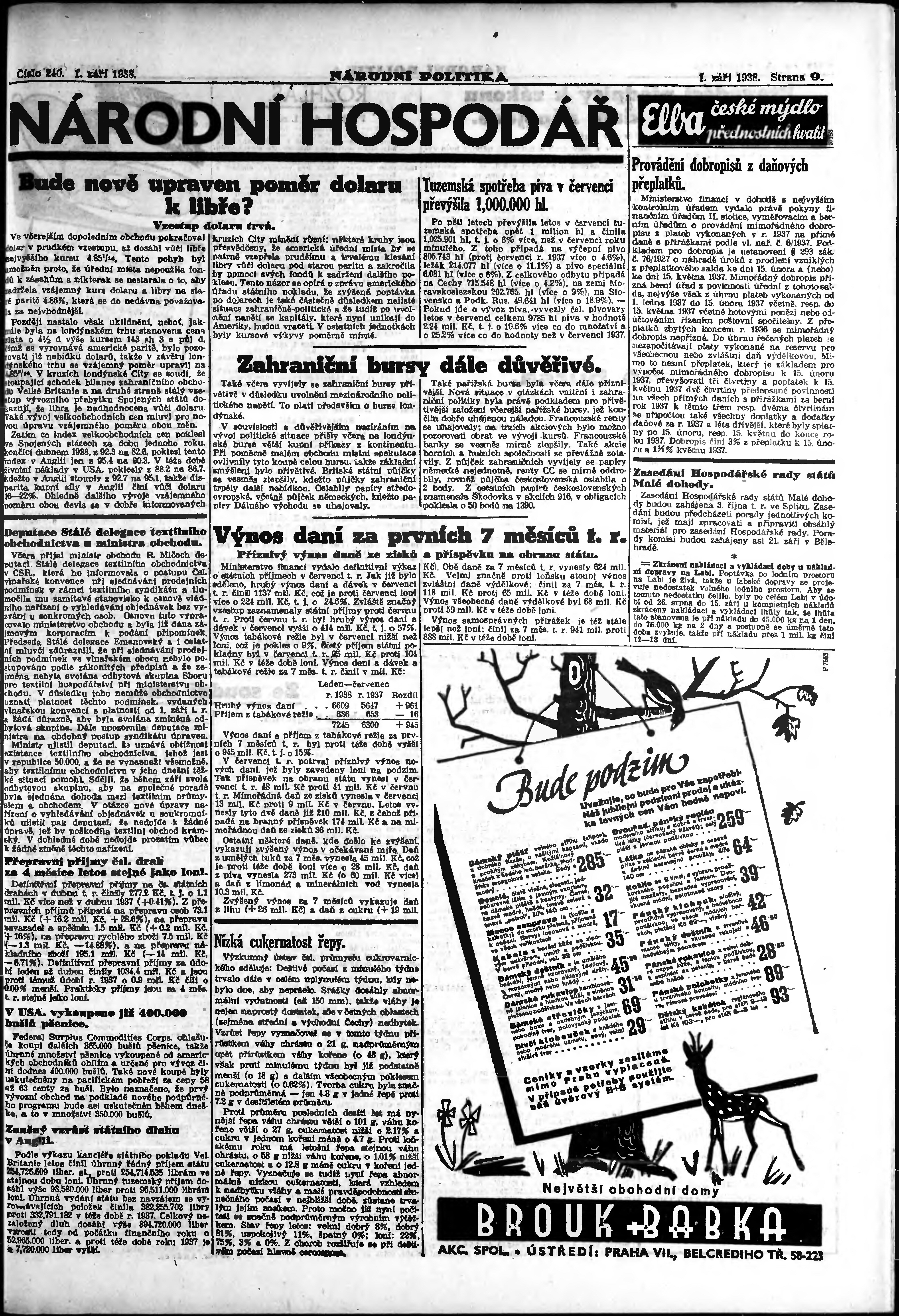 * Datum vydání výtisku: 1.9.1938 Číslo výtisku: 240 Poznámky k výtisku: ranní vydání; vydání pro Prahu;