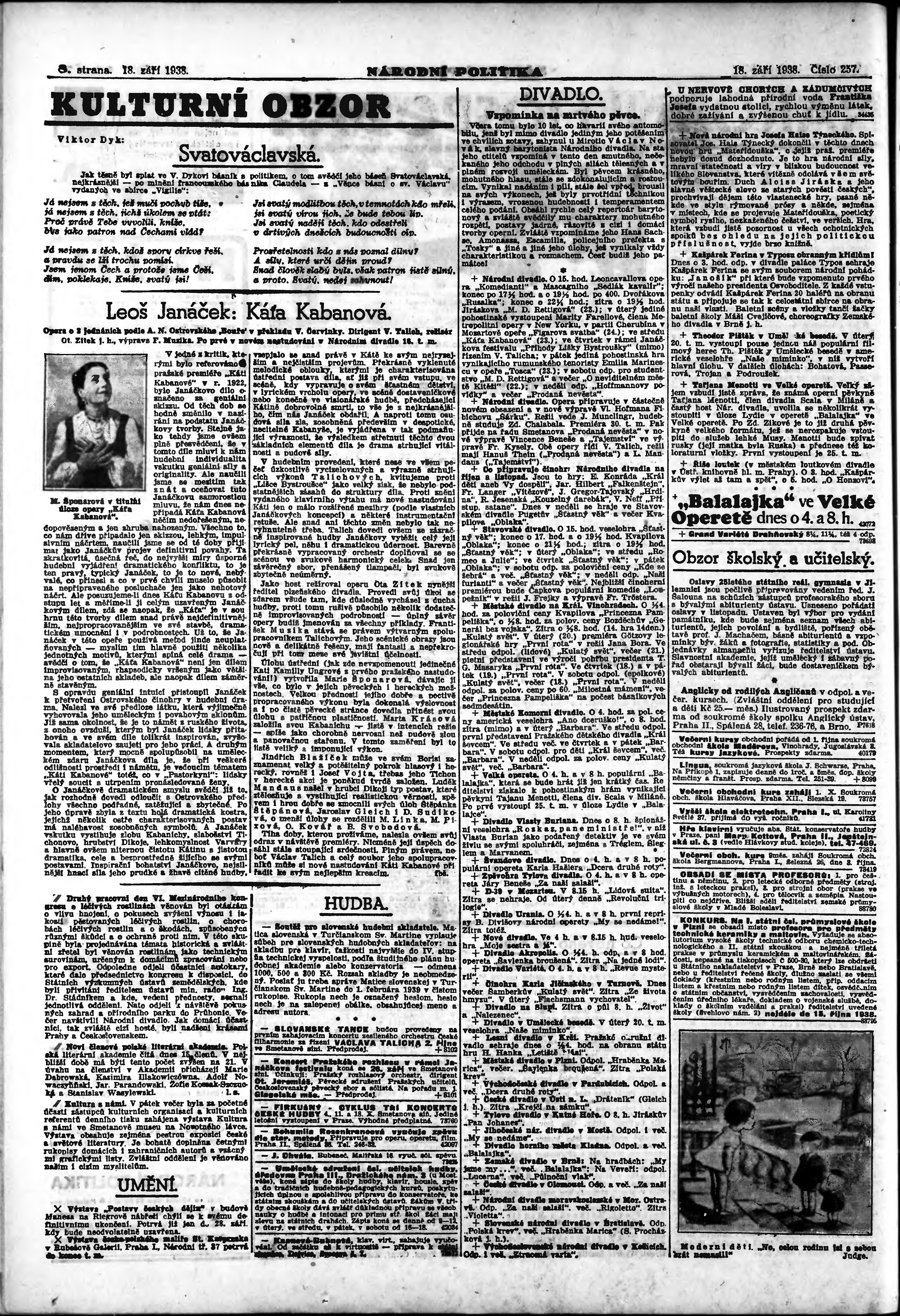 * Datum vydání výtisku: 18.9.1938 Číslo výtisku: 257 Poznámky k výtisku: ranní vydání;