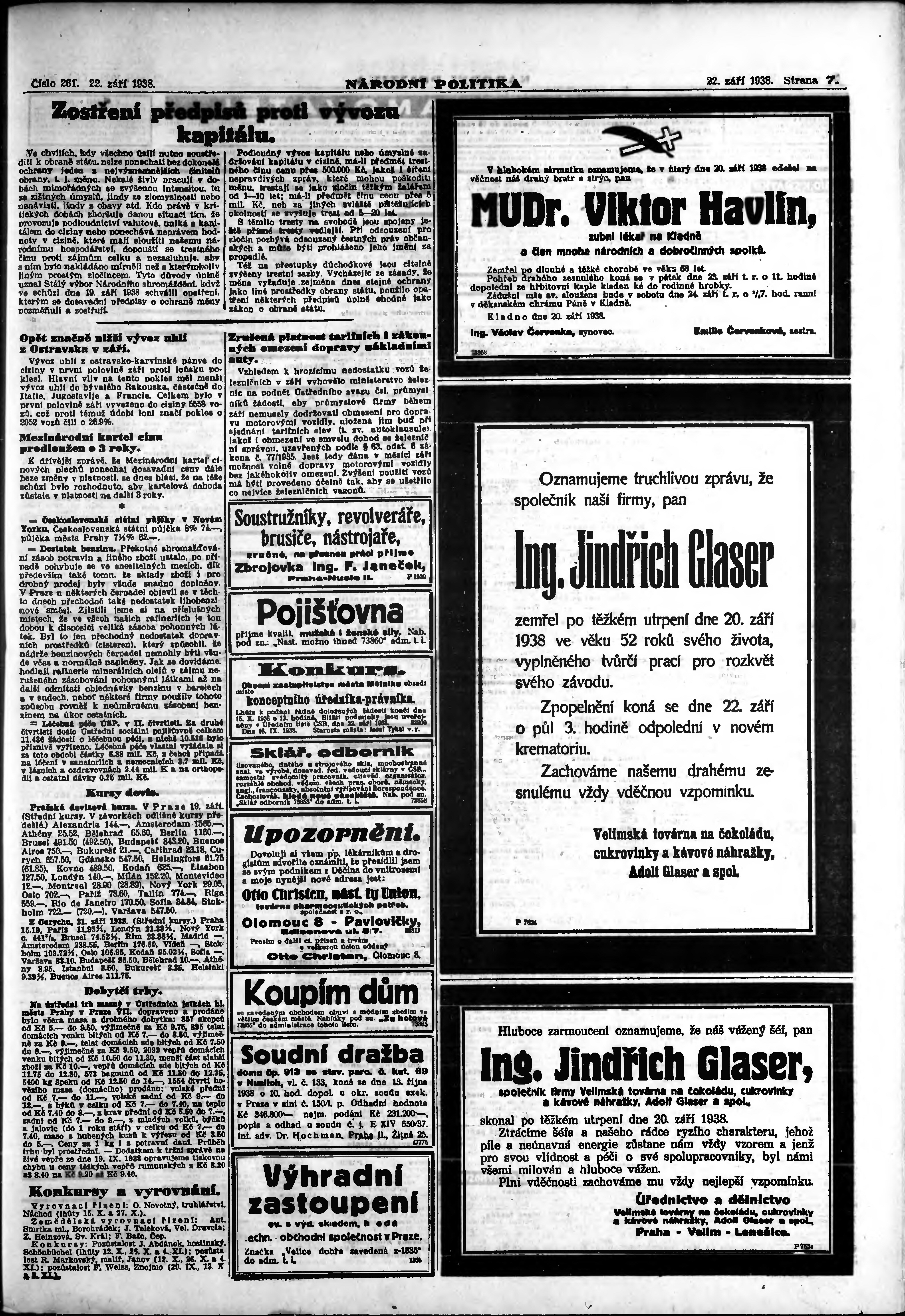 * Datum vydání výtisku: 22.9.1938 Číslo výtisku: 261 Poznámky k výtisku: ranní vydání; vydání pro Prahu;