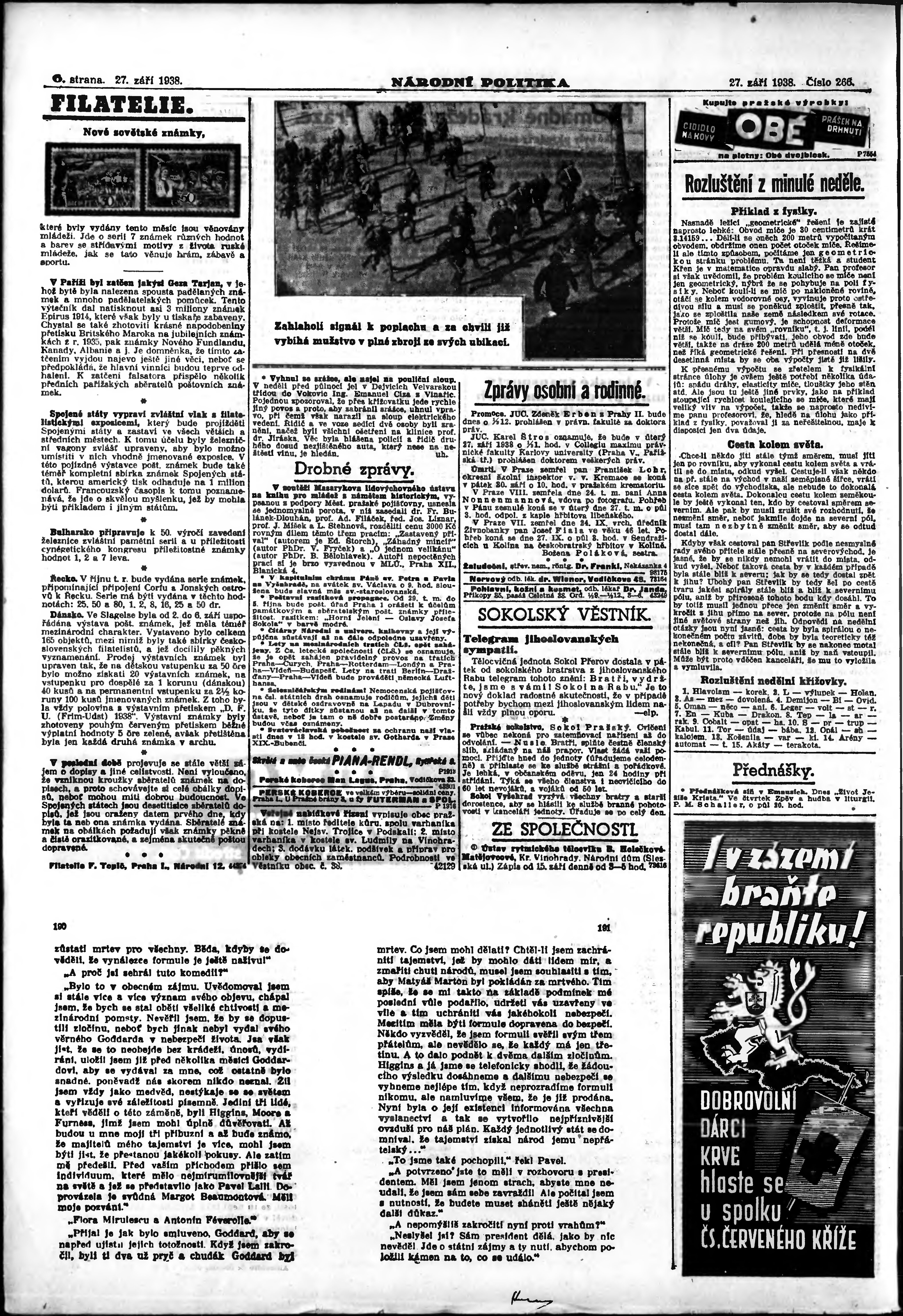 * Datum vydání výtisku: 27.9.1938 Číslo výtisku: 266 Poznámky k výtisku: ranní vydání; vydání pro Prahu;