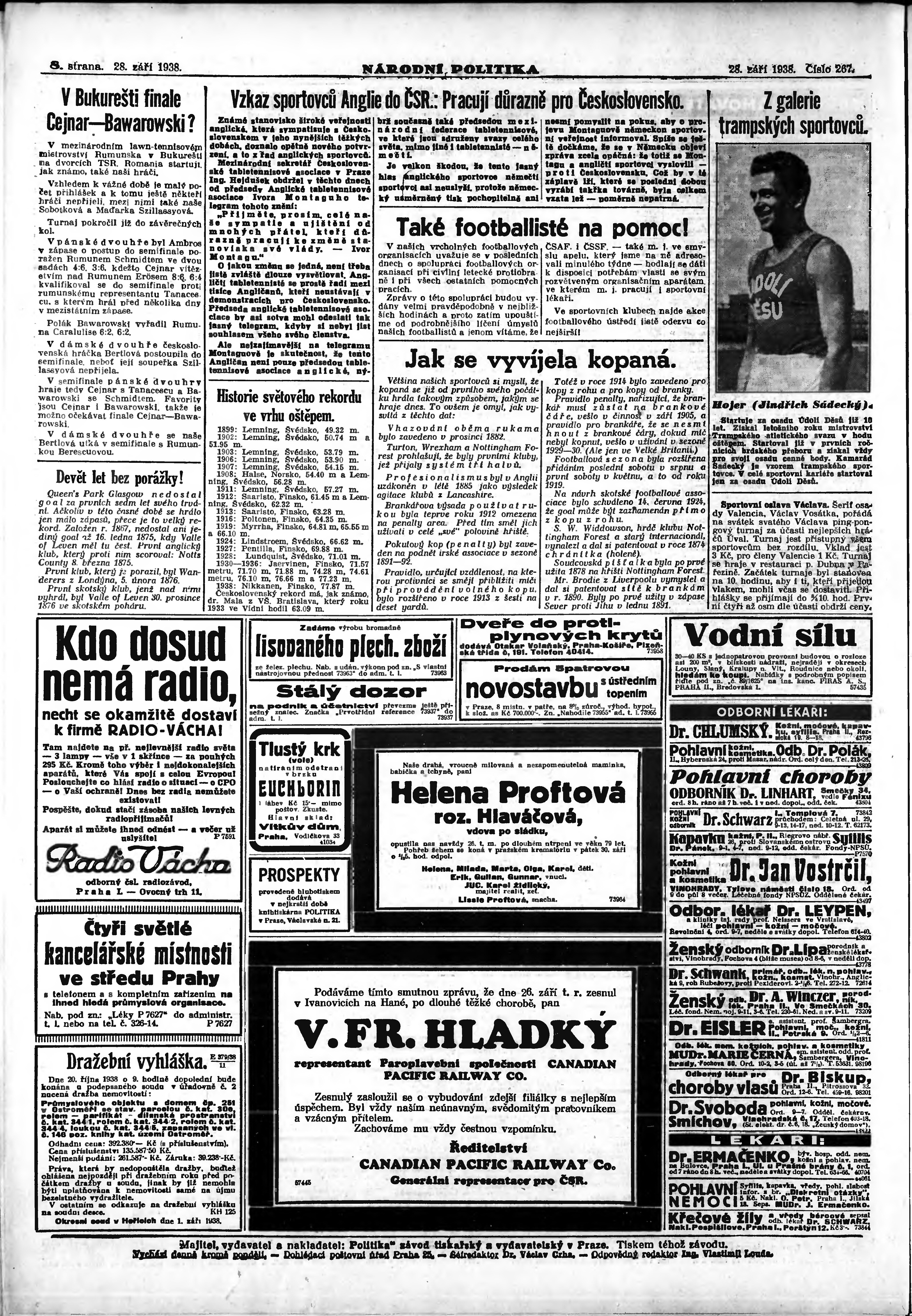 * Datum vydání výtisku: 28.9.1938 Číslo výtisku: 267 Poznámky k výtisku: ranní vydání; vydání pro Prahu;
