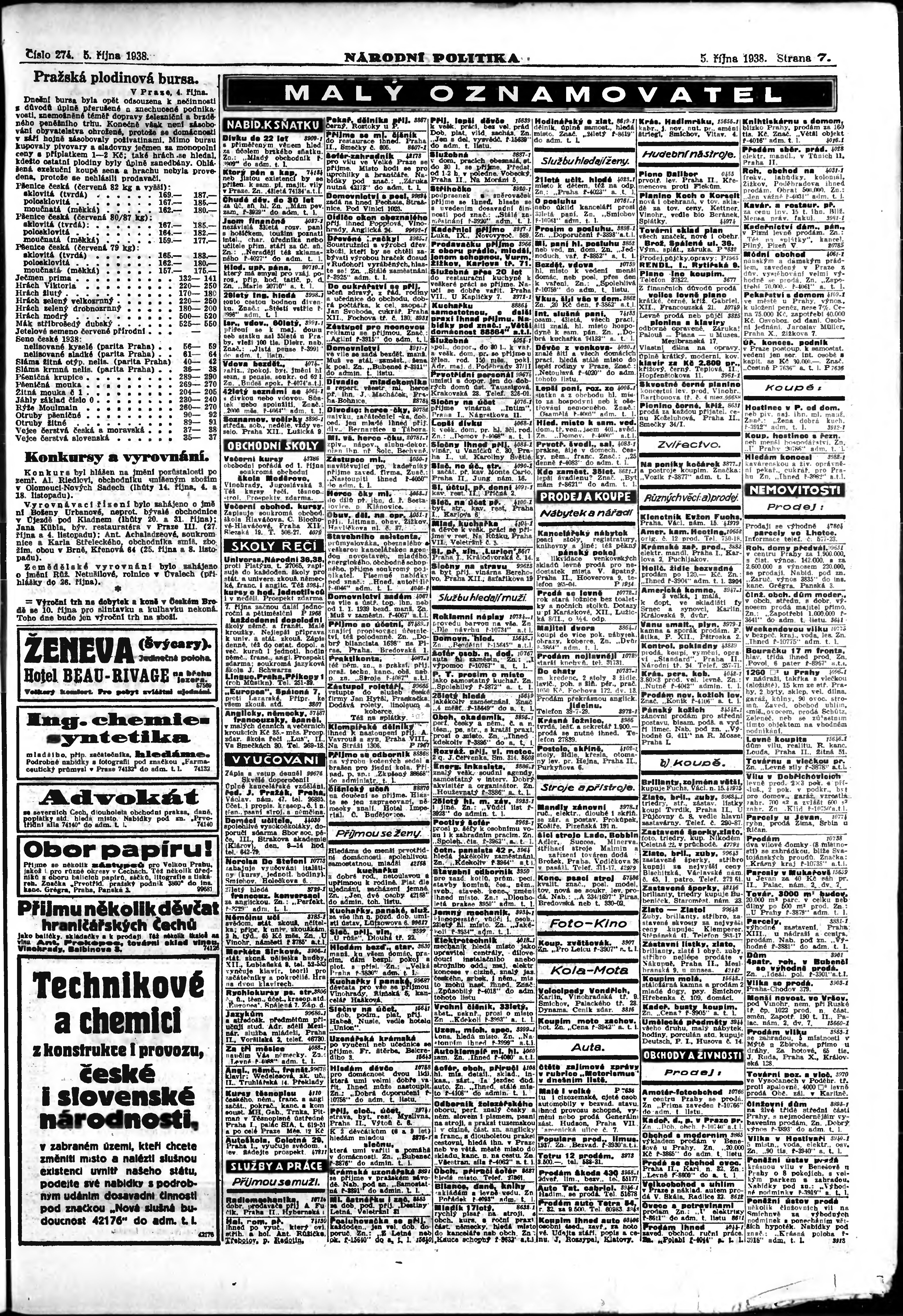 * Datum vydání výtisku: 5.10.1938 Číslo výtisku: 274 Poznámky k výtisku: ranní vydání; vydání pro Prahu;