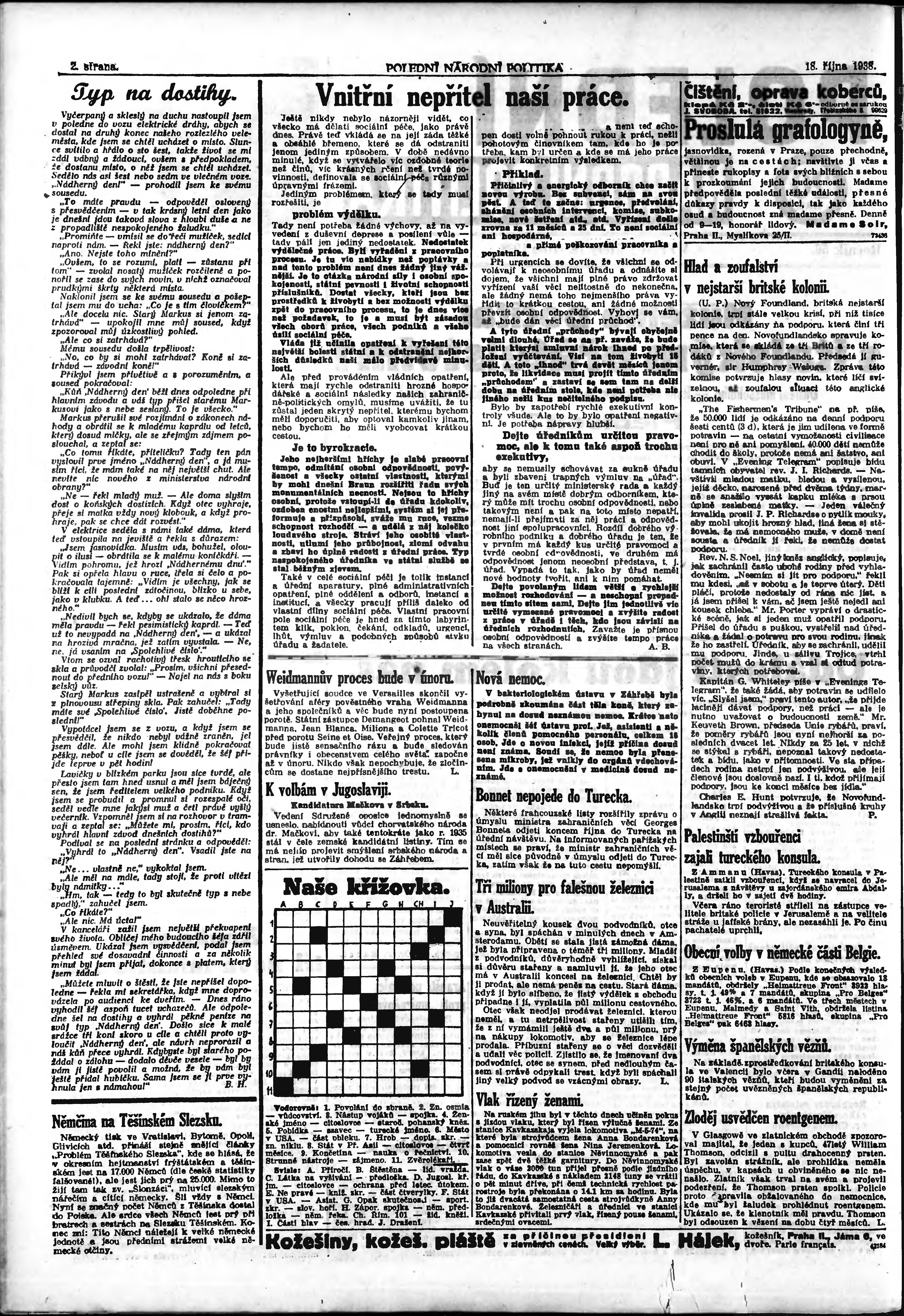 * Datum vydání výtisku: 18.10.1938 Číslo výtisku: 287 Poznámky k výtisku: polední vydání;