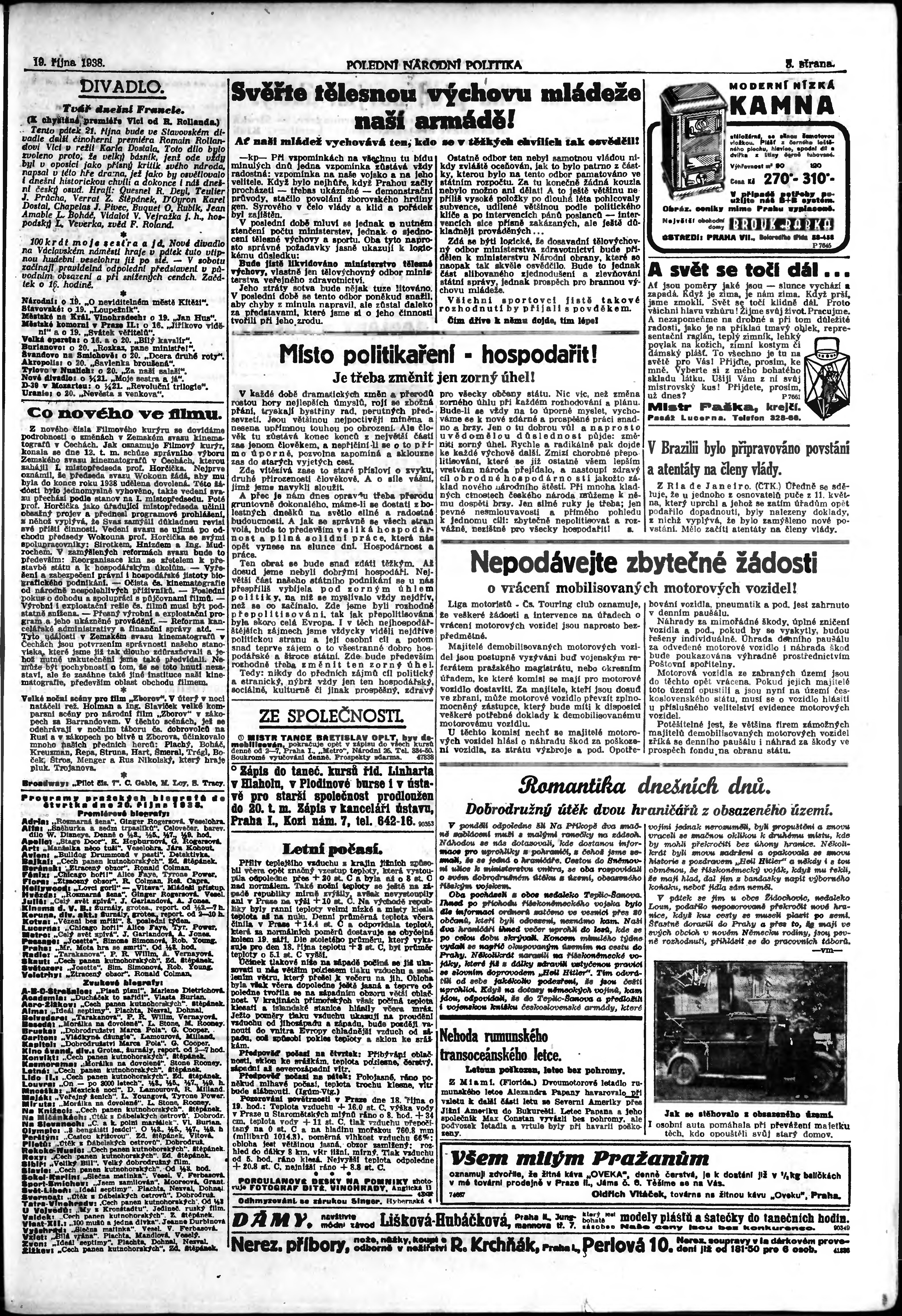 * Datum vydání výtisku: 19.10.1938 Číslo výtisku: 288 Poznámky k výtisku: polední vydání;